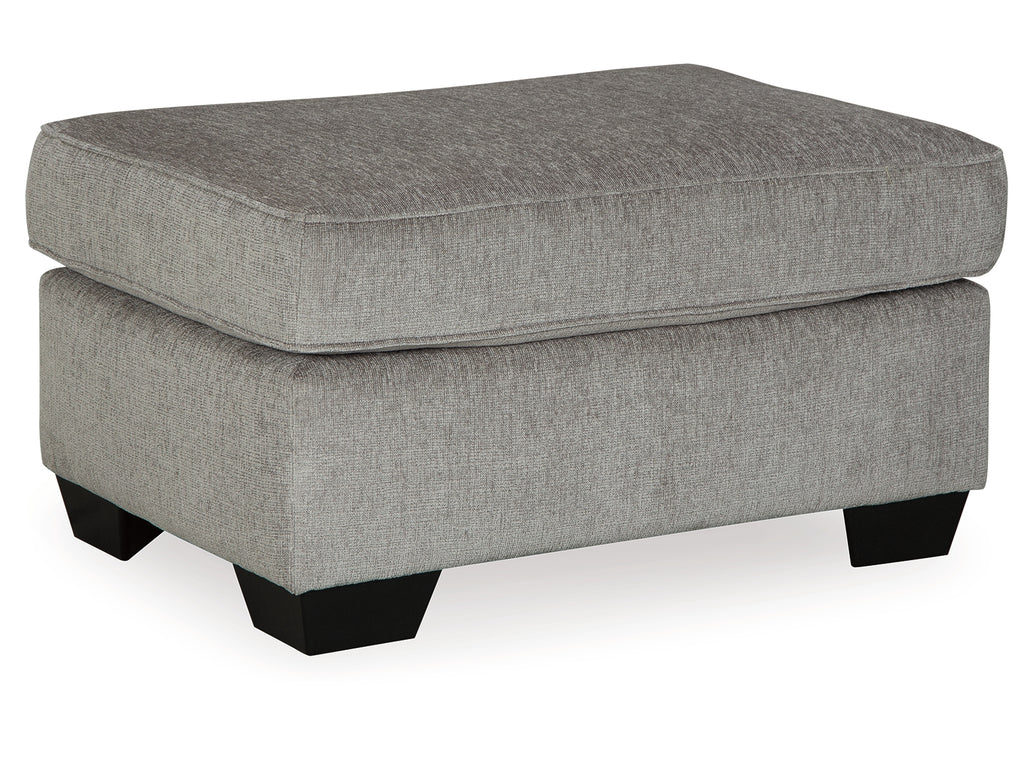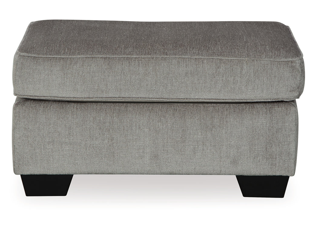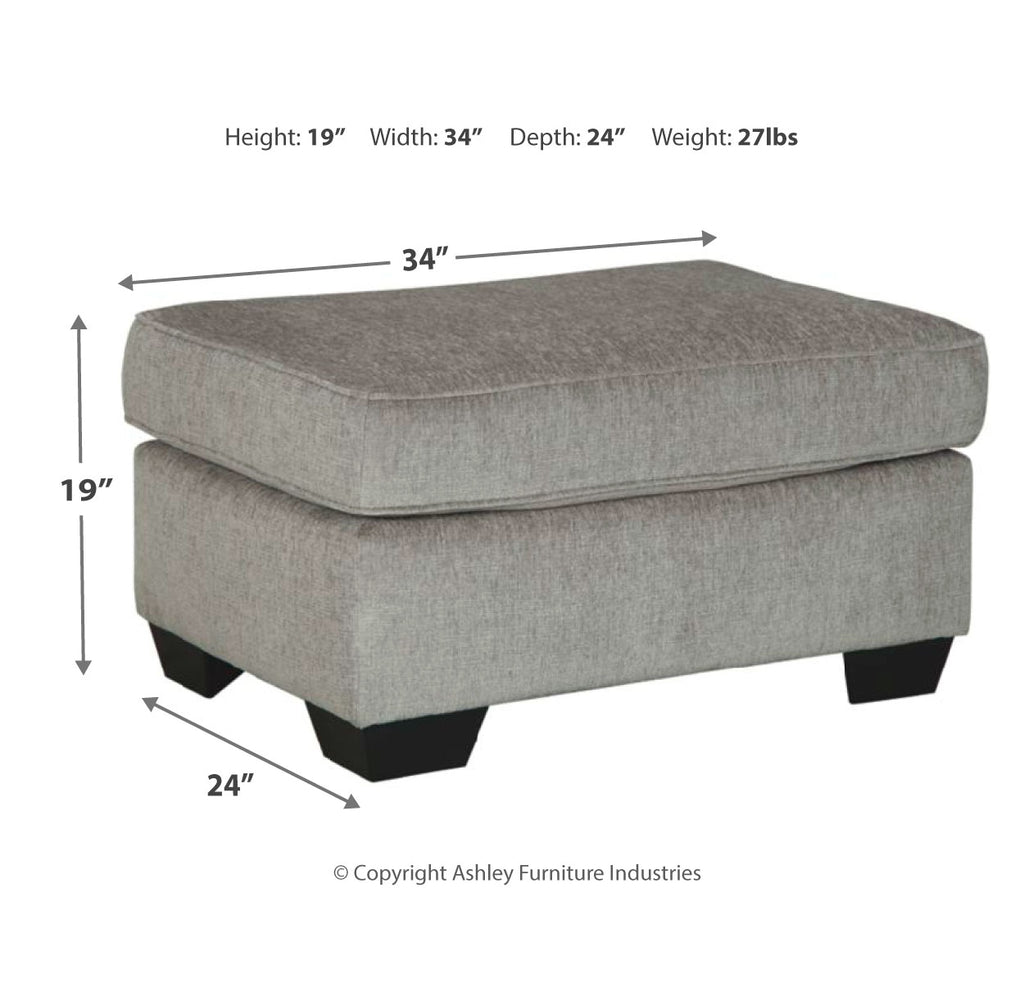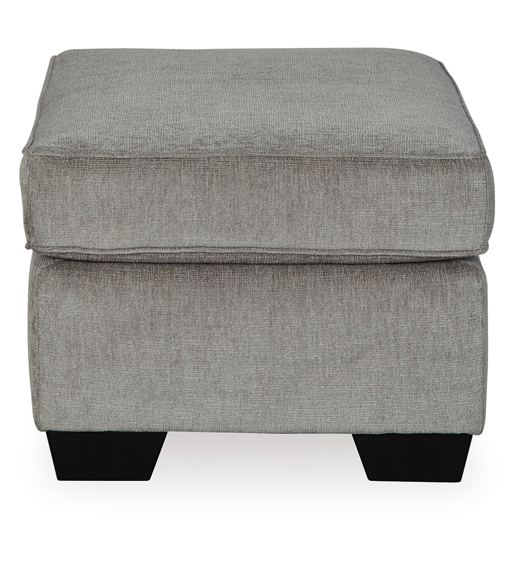 If style is the question, then this striking ottoman is the answer. Its decidedly contemporary profile is enhanced with plump cushioning and a chenille-feel upholstery that's so pleasing to the touch. Rest assured, this ottoman in richly neutral alloy is sure to play well with so many color schemes. | Product Features