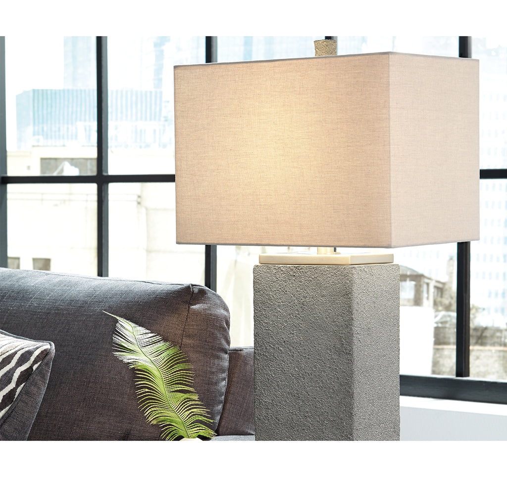 Faux concrete and a brushed silver finish set this table lamp apart from the rest. It’s contemporary and chic and will show off your eclectic taste. | Product Features