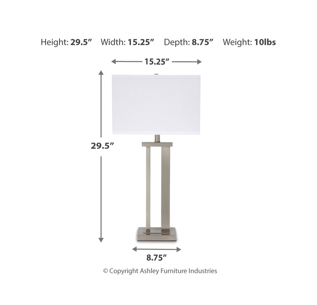 With a shiny finish and detailed clean lines, this is a winning table lamp. Its neutral design will pair back to almost any living space. | Product Features