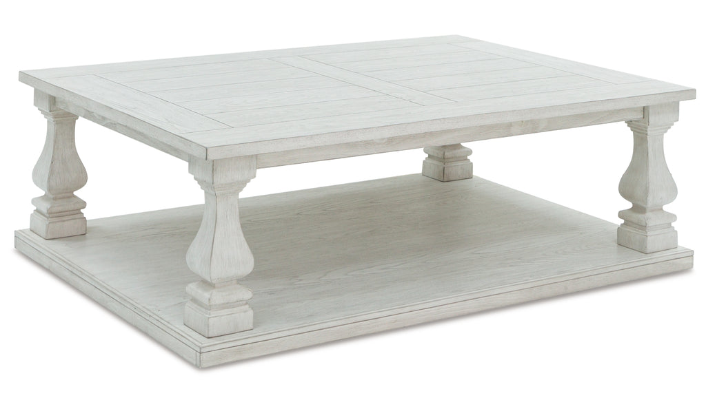 Elevating the art of casual traditional styling, this coffee table is your heavenly home accent realized. Oversized and indulgent, this beautiful piece wows with a wide plank design and square-shaped baluster legs, leaving you absorbed in its charisma. | Product Features