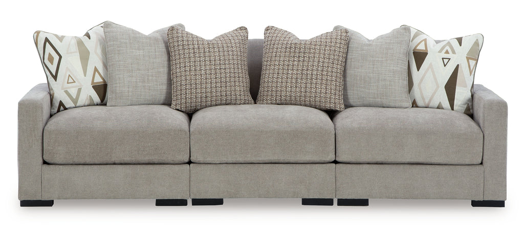 Customizable, contemporary comfort. This modular sofa sectional changes as your living room needs do. You can stage and rearrange the pieces as you please, whether it’s for family TV time, hosting guests or a simple style refresh. Adding to the sectional's versatility: a goes-with-anything neutral hue. And it keeps your relaxation a priority, with ultra-plush feather blend seat cushions rounding out the upscale design. | Product Features