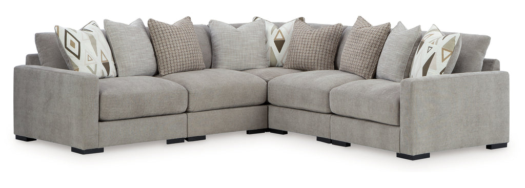 Customizable, contemporary comfort. This modular sectional changes as your living room needs do. You can stage and rearrange the pieces as you please, whether it’s for family TV time, hosting guests or a simple style refresh. Adding to the sectional's versatility: a goes-with-anything neutral hue. And it keeps your relaxation a priority, with ultra-plush feather blend seat cushions rounding out the upscale design. | Product Features