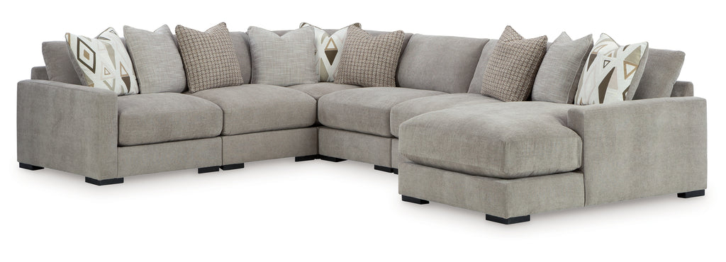 Customizable, contemporary comfort. This modular sectional with chaise changes as your living room needs do. You can stage and rearrange the pieces as you please, whether it’s for family TV time, hosting guests or a simple style refresh. Adding to the sectional's versatility: a goes-with-anything neutral hue. And it keeps your relaxation a priority, with ultra-plush feather blend seat cushions rounding out the upscale design. | Product Features