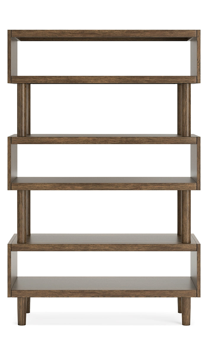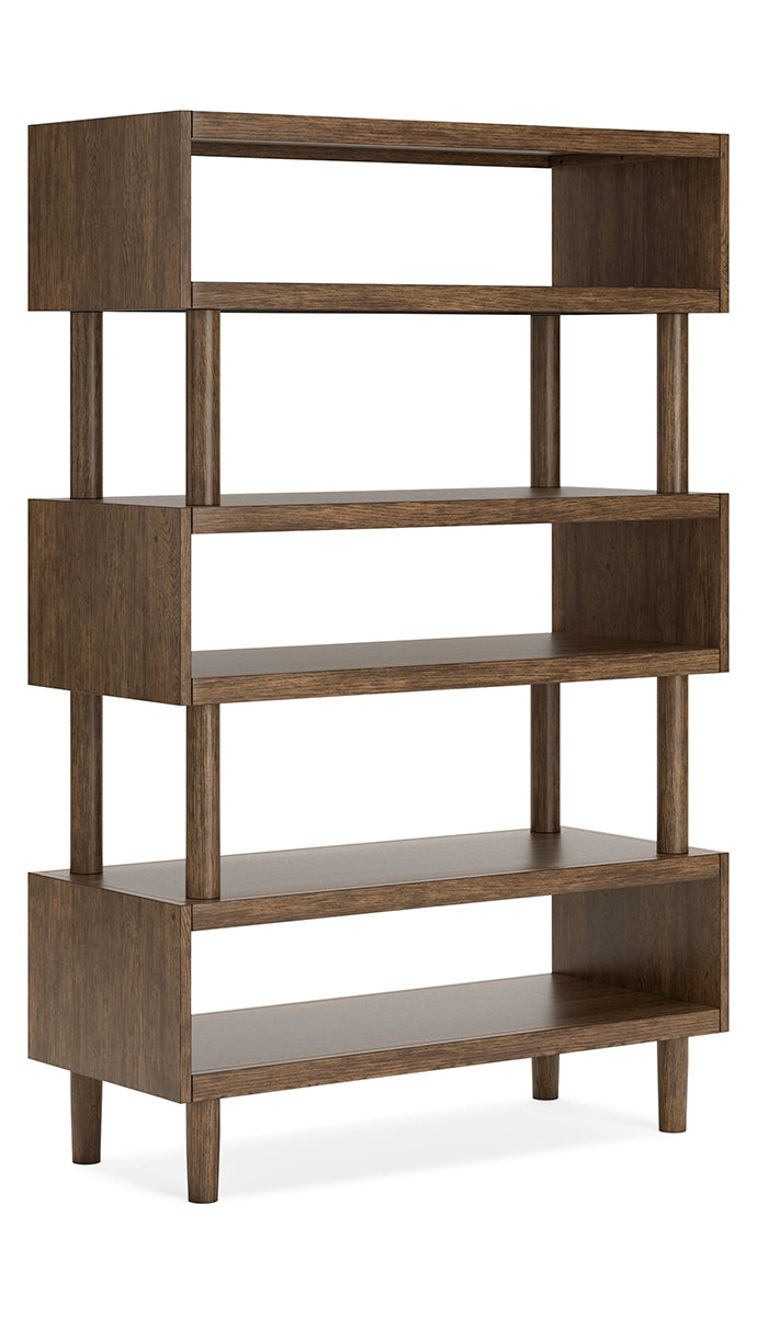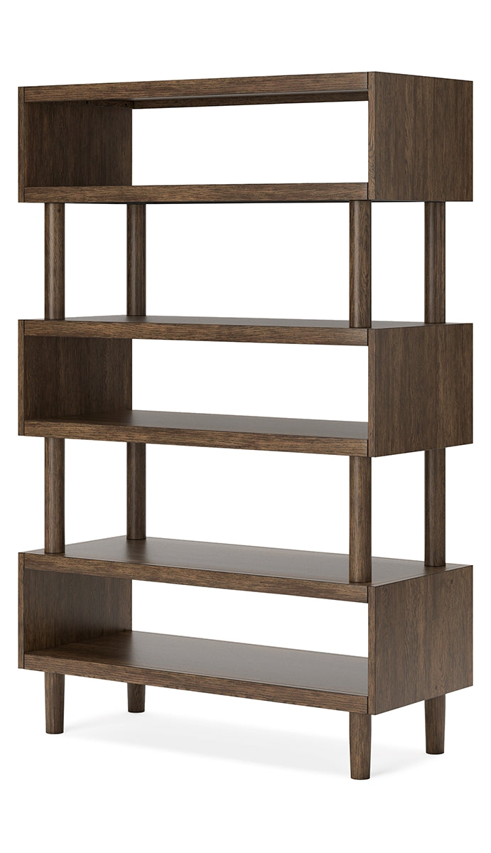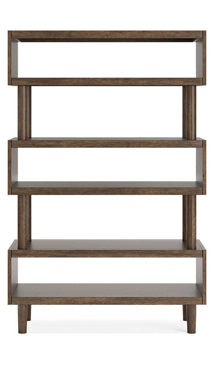 This bookcase expertly blends modern form and function. Its warm brown finish acts as a beautiful backdrop to your books and decorative displays. With a geometric, retro-inspired design lending a subtly eclectic character, it’s a stylish home office staple in the making. | Product Features