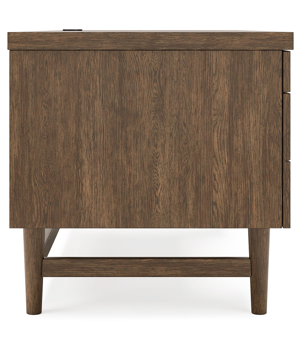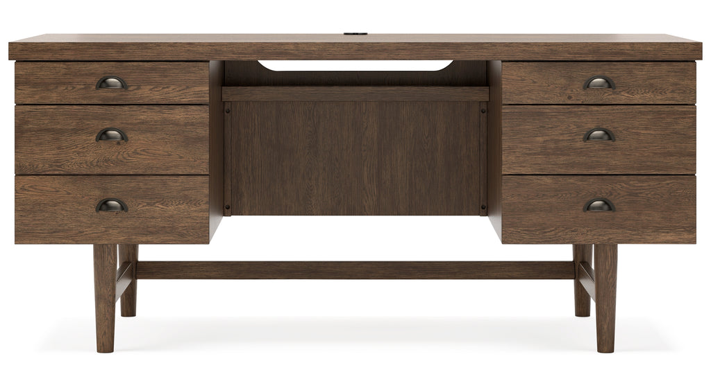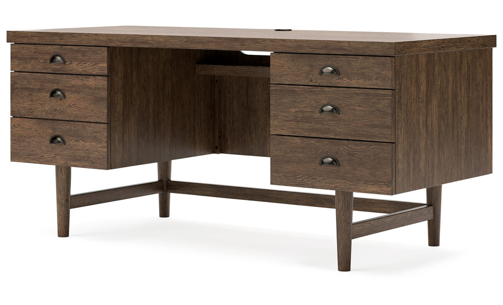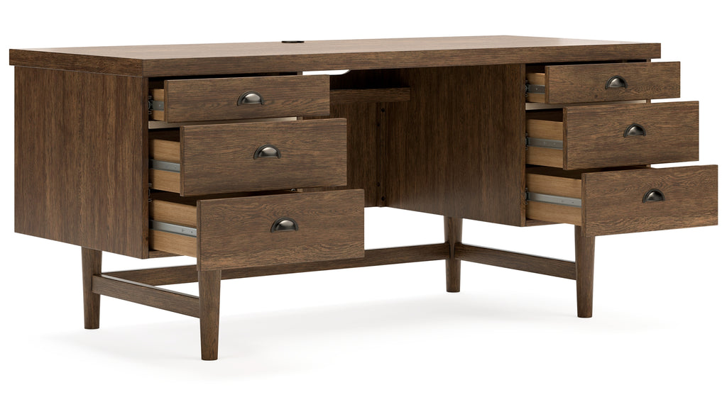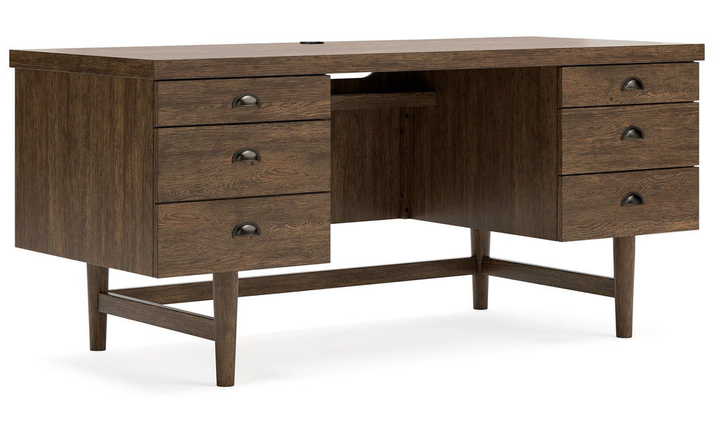This home office desk expertly blends modern form and function. Its warm brown finish brings an inviting feel to studying or working from home. Handy storage drawers and a discreet spot for files ensure your office is always in order. With its retro-inspired design lending a subtly eclectic character, this desk is a stylish home office staple in the making. | Product Features