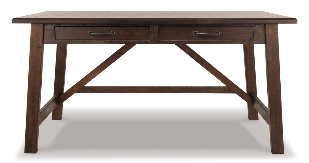 Leaning toward a casually cool look with a touch of rustic industrial flair? This home office desk with canted legs takes a fresh stance on style. Two smooth-gliding drawers with dovetail construction reflect high quality that never goes out of fashion. Saw marks infuse a touch of rich distressing. Antiqued sculptural pulls provide the finishing touch. |