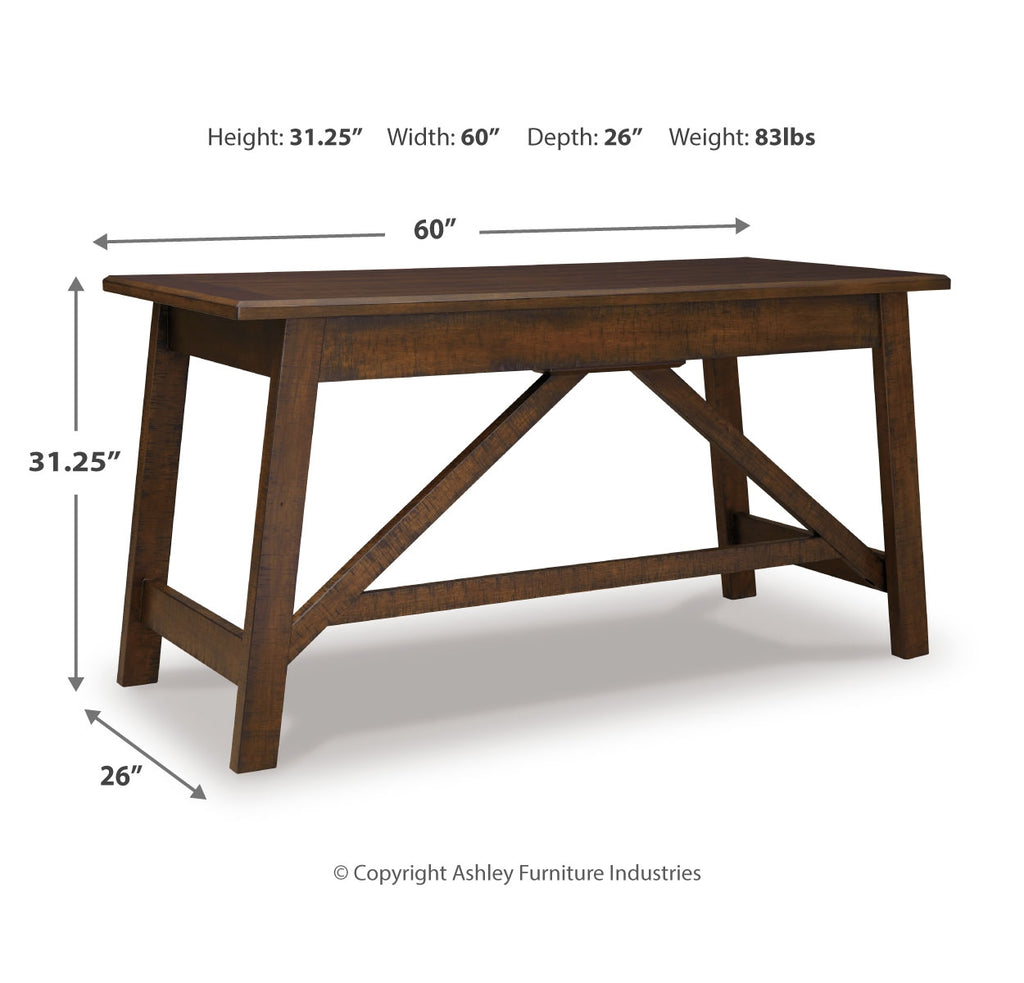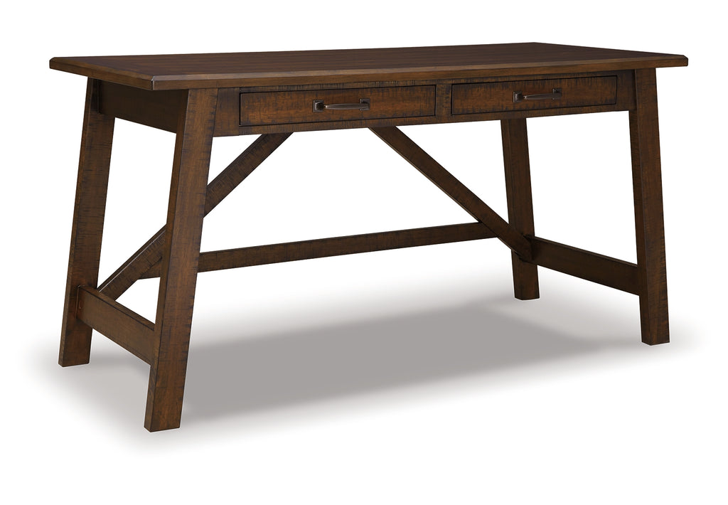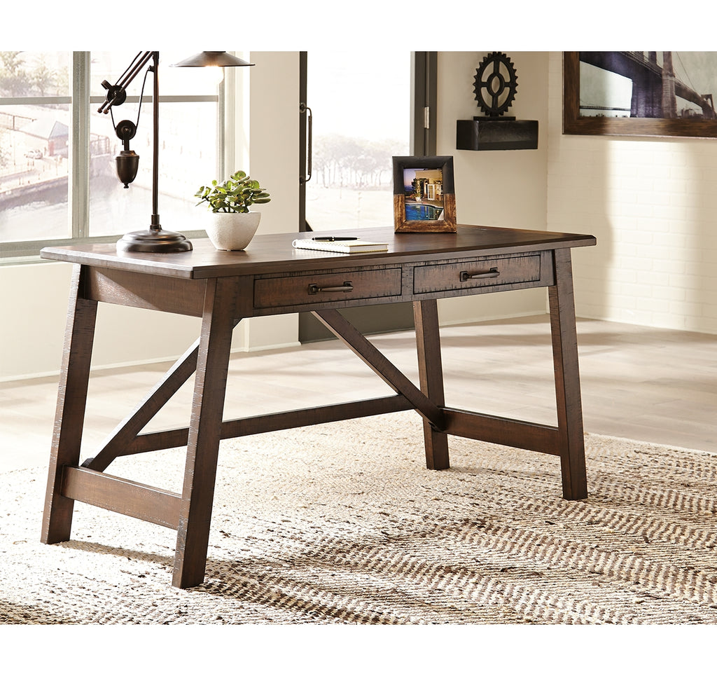 Leaning toward a casually cool look with a touch of rustic industrial flair? This home office desk with canted legs takes a fresh stance on style. Two smooth-gliding drawers with dovetail construction reflect high quality that never goes out of fashion. Saw marks infuse a touch of rich distressing. Antiqued sculptural pulls provide the finishing touch. |