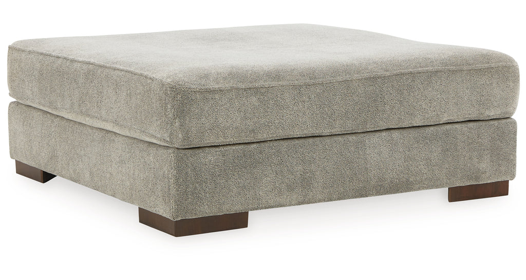 Get a leg up on comfort with this oversized accent ottoman. Sumptuously soft smoke gray chenille upholstery welcomes your feet with open arms. A versatile performer, this stylish stool steps in as a serving spot for impromptu entertaining. | Product Features
