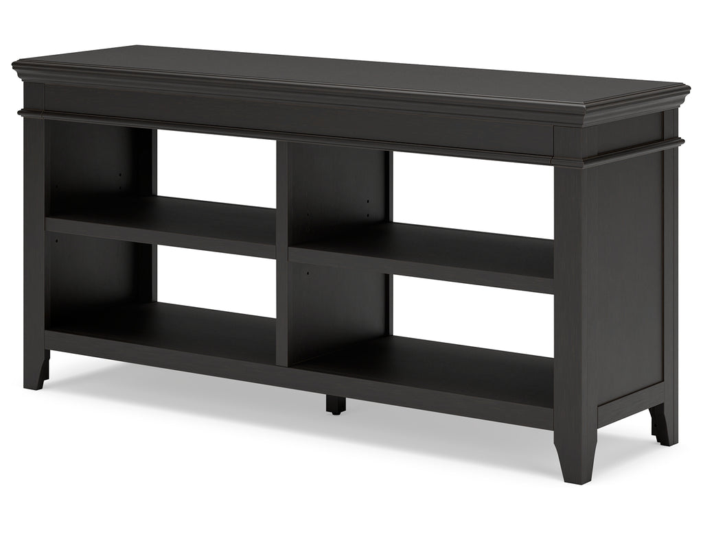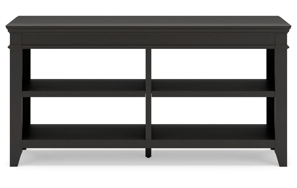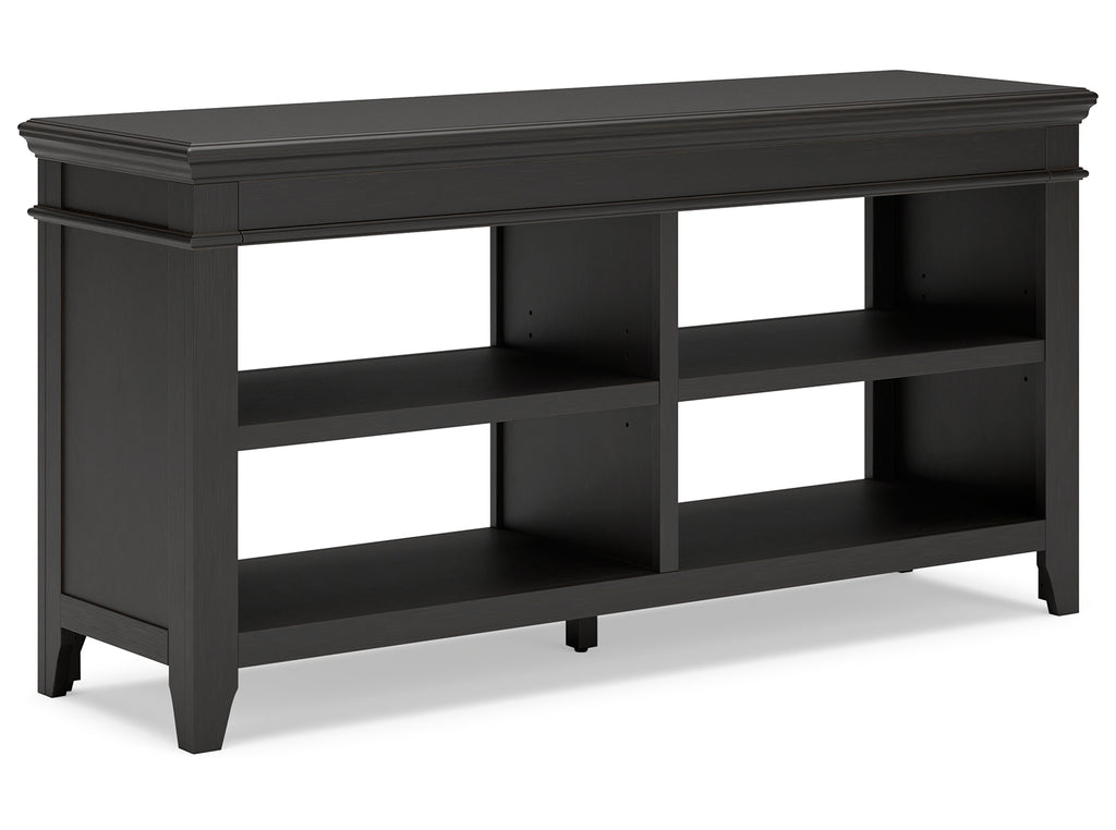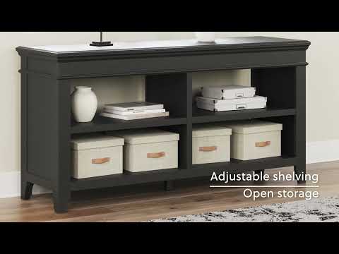 Make a style statement with this home office credenza. Its traditional design is updated with an on-trend vintage black finish. The credenza's open storage and adjustable shelving add up to a well-organized workspace. | Product Features
