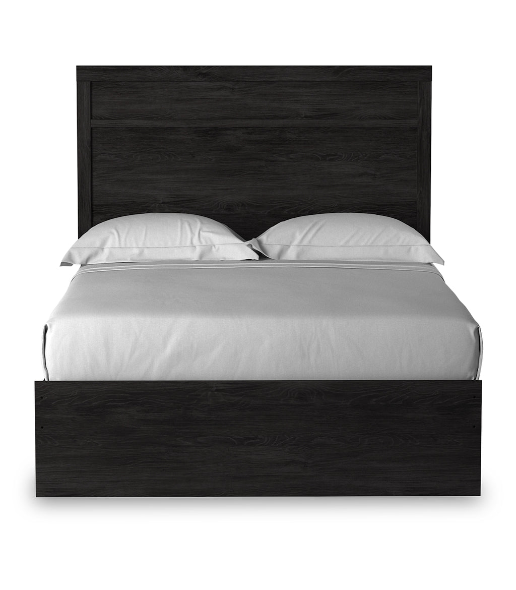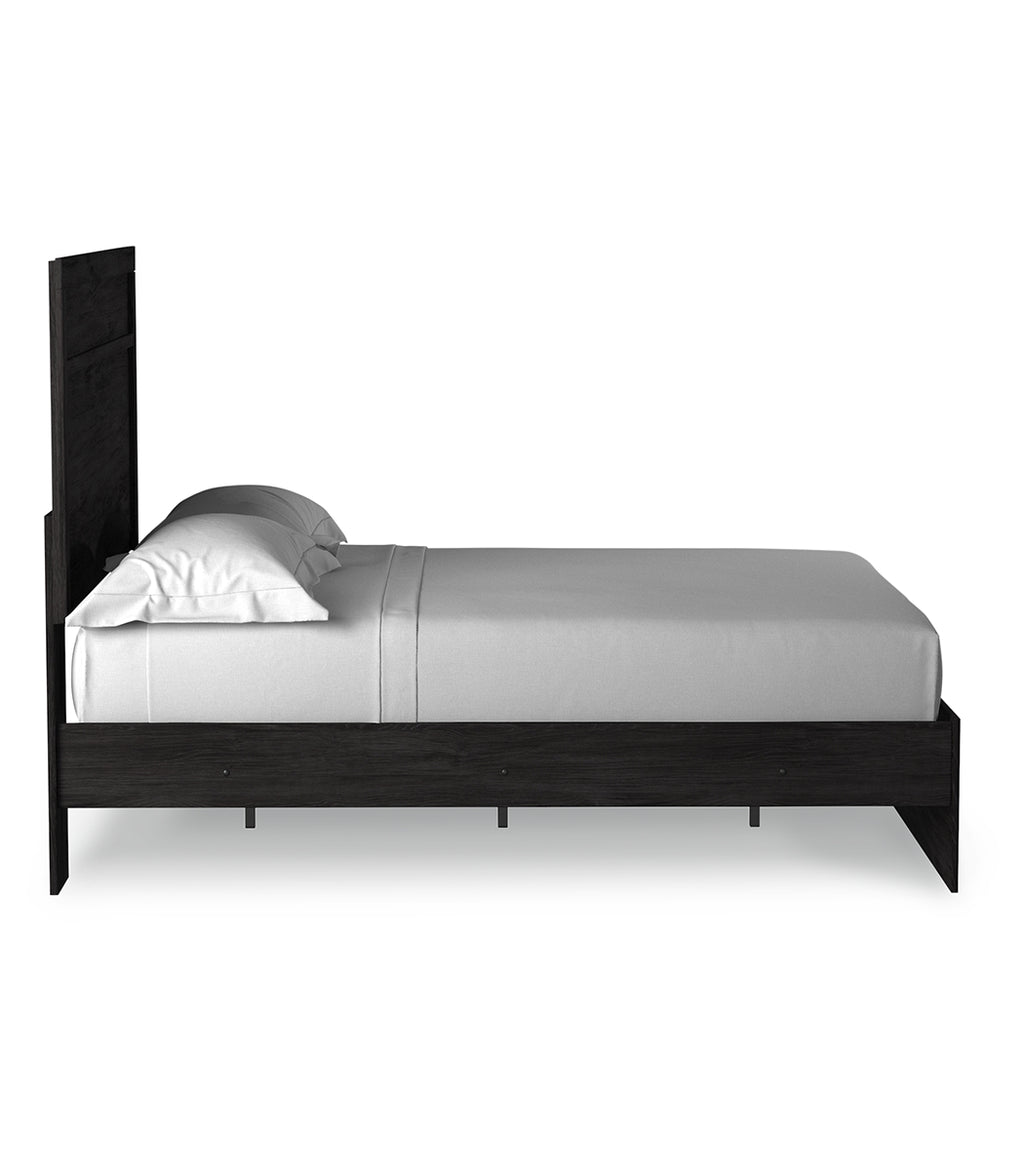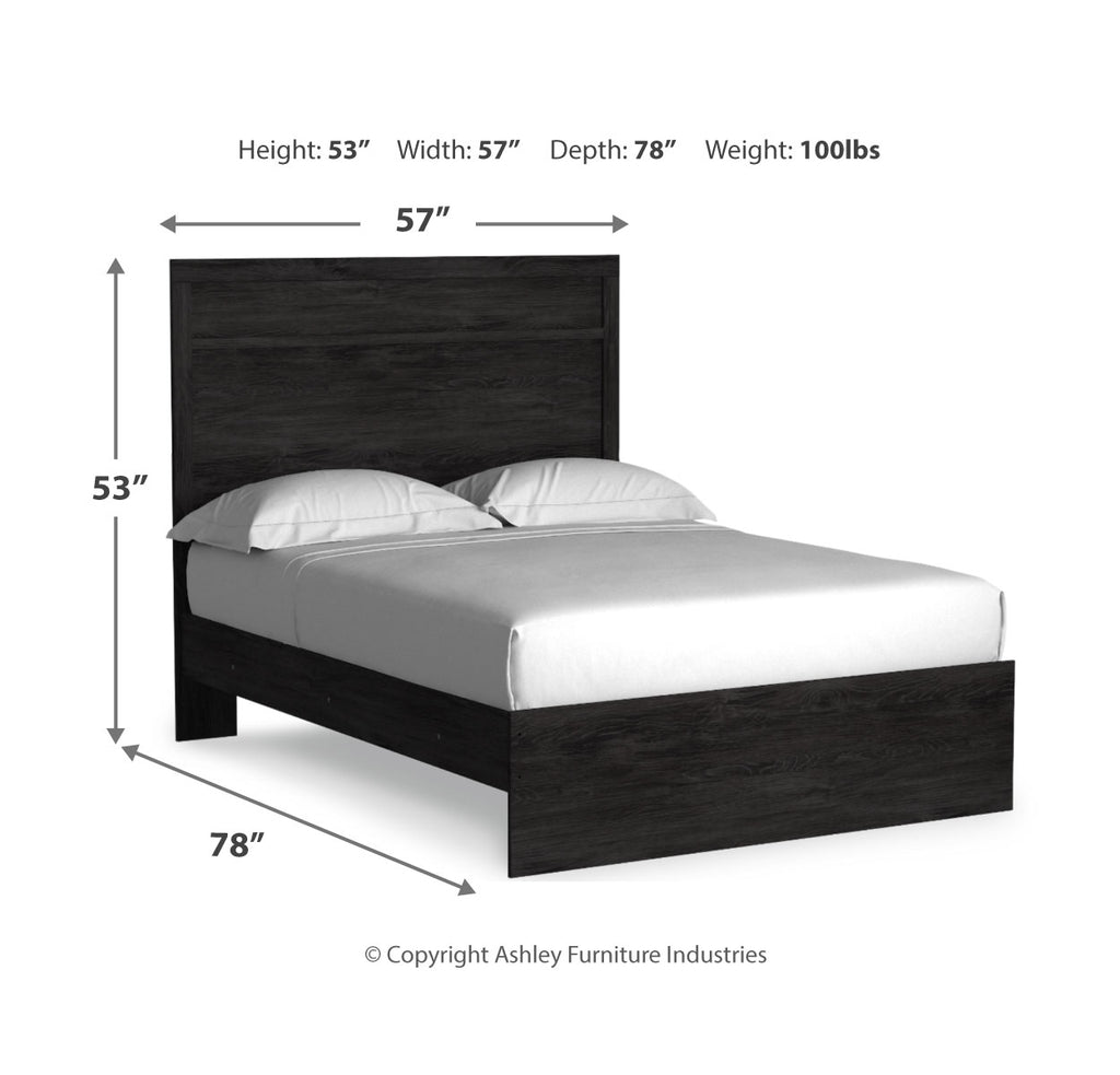 With its clean-lined look and modern attitude, this full panel bed is a fresh style awakening. A warm charcoal hue over replicated oak grain easily complements other furniture finishes. The simple, unadorned profile is given depth and dimension with the addition of plank-style moulding on the headboard—proof that beauty lies in the details. | Product Features