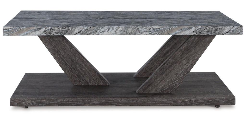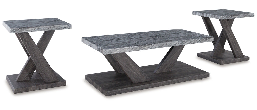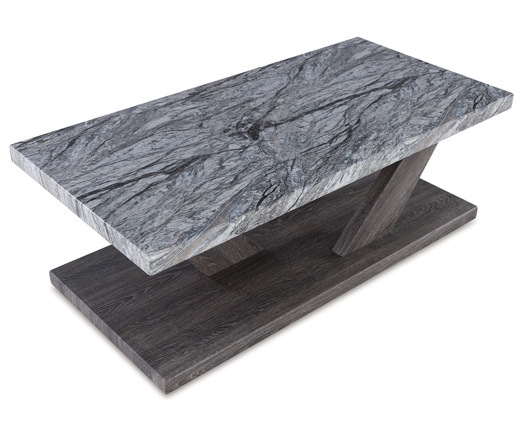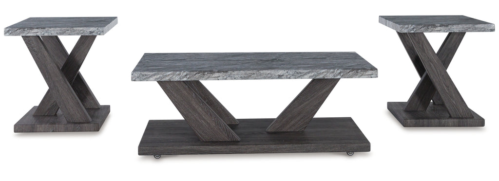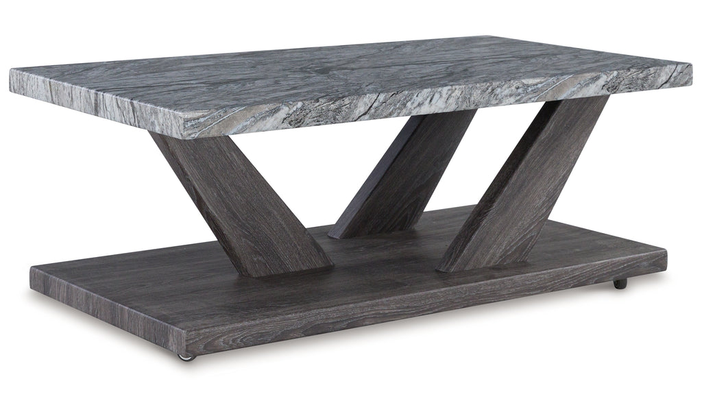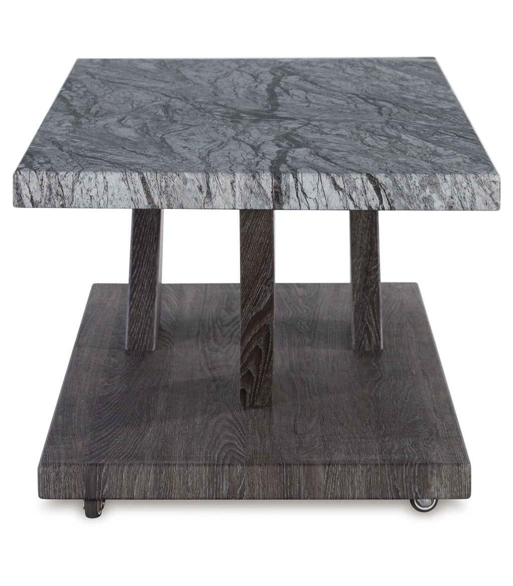 Live in luxurious harmony (without breaking the bank) when you stage this table set in your seating area. Dynamic weathered gray bases act as the foundation for faux gray marble tops. Très chic. Your contemporary living room has never been so stylishly coordinated. And for must-have function, the coffee table's built-in casters have you covered. | Product Features