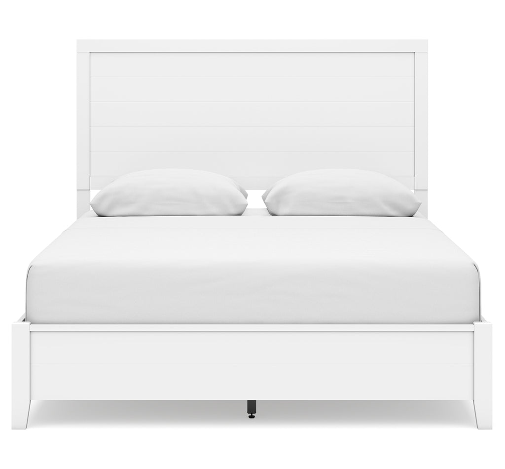 Are you a lover of casual contemporary style? Then this queen panel bed is perfect for you. The clean, white finish conveys an easy-breezy sensibility, while planked detailing enhances the design. Durable, sleek and stylish, it graces your space with timeless appeal. | Product Features
