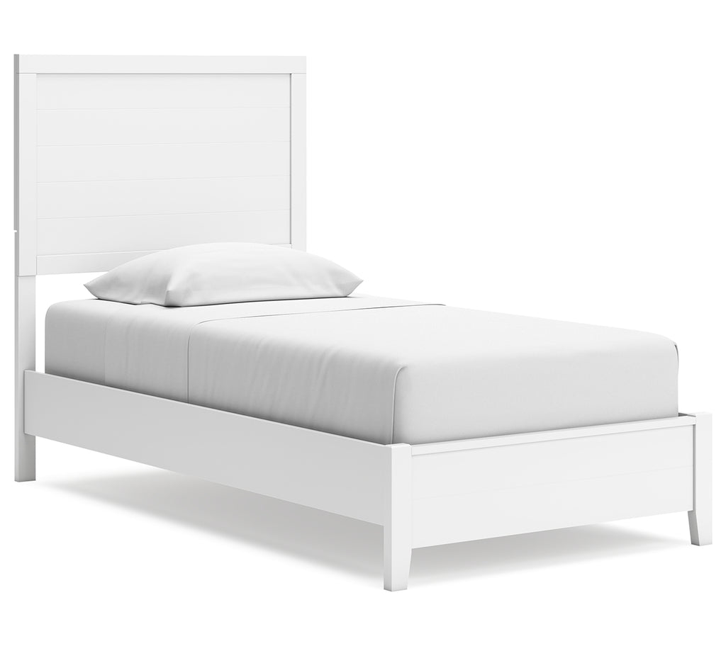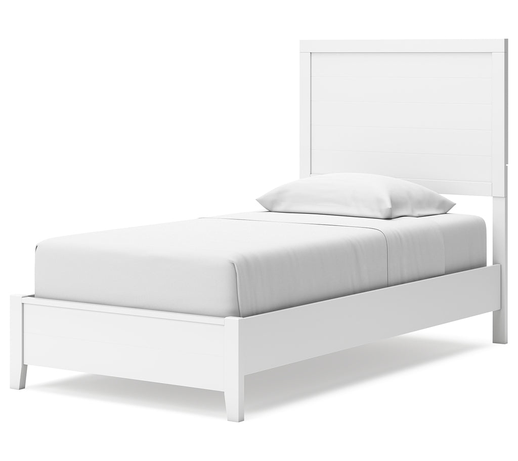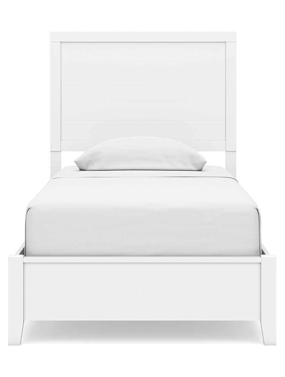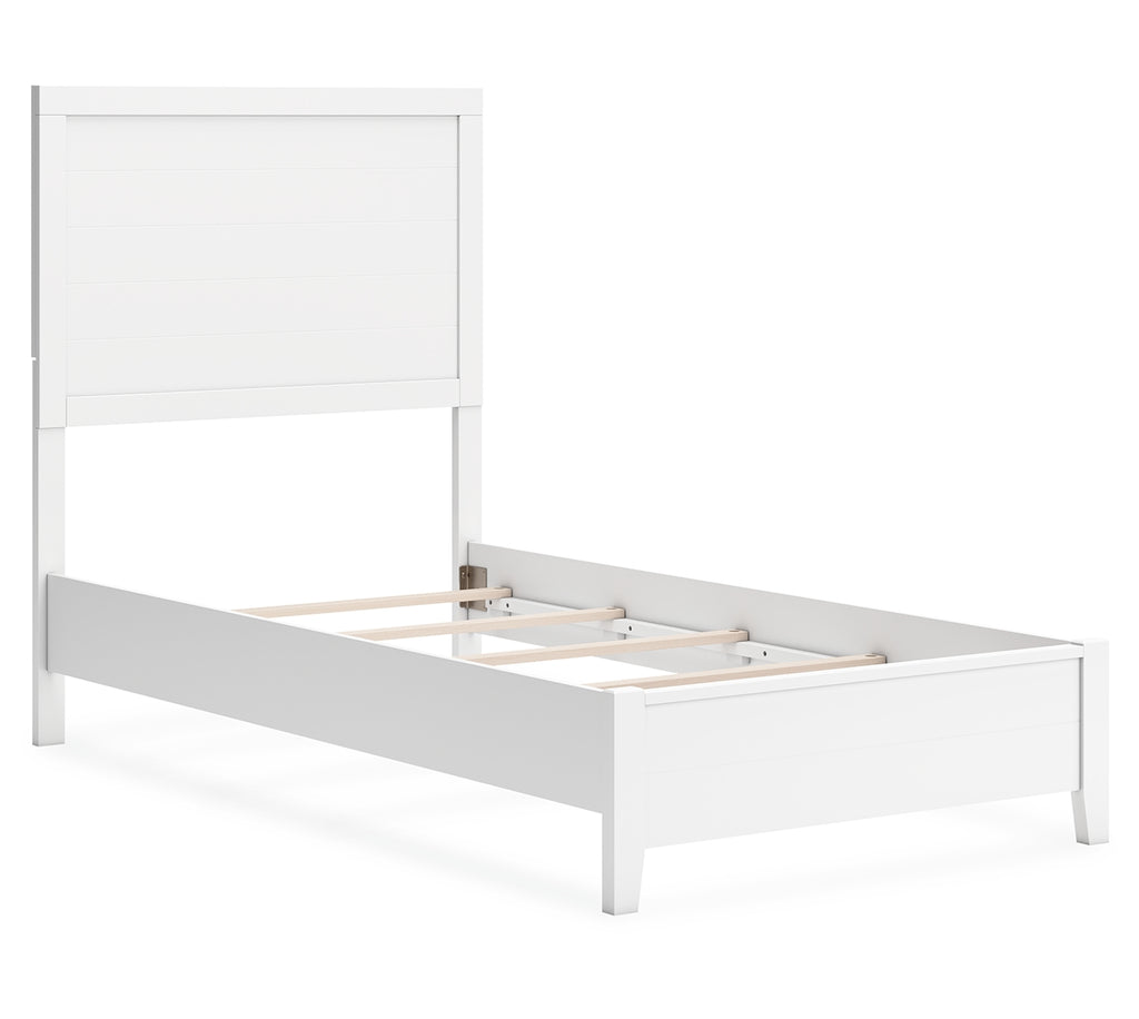 Are you a lover of casual contemporary style? Then this twin panel bed is perfect for you. The clean, white finish conveys an easy-breezy sensibility, while planked detailing enhances the design. Durable, sleek and stylish, it graces your space with timeless appeal. | Product Features