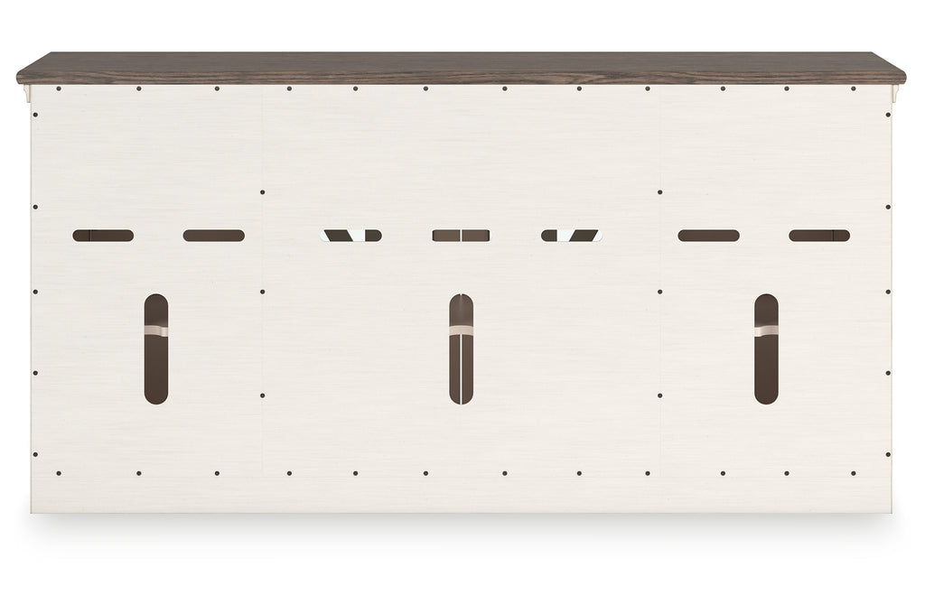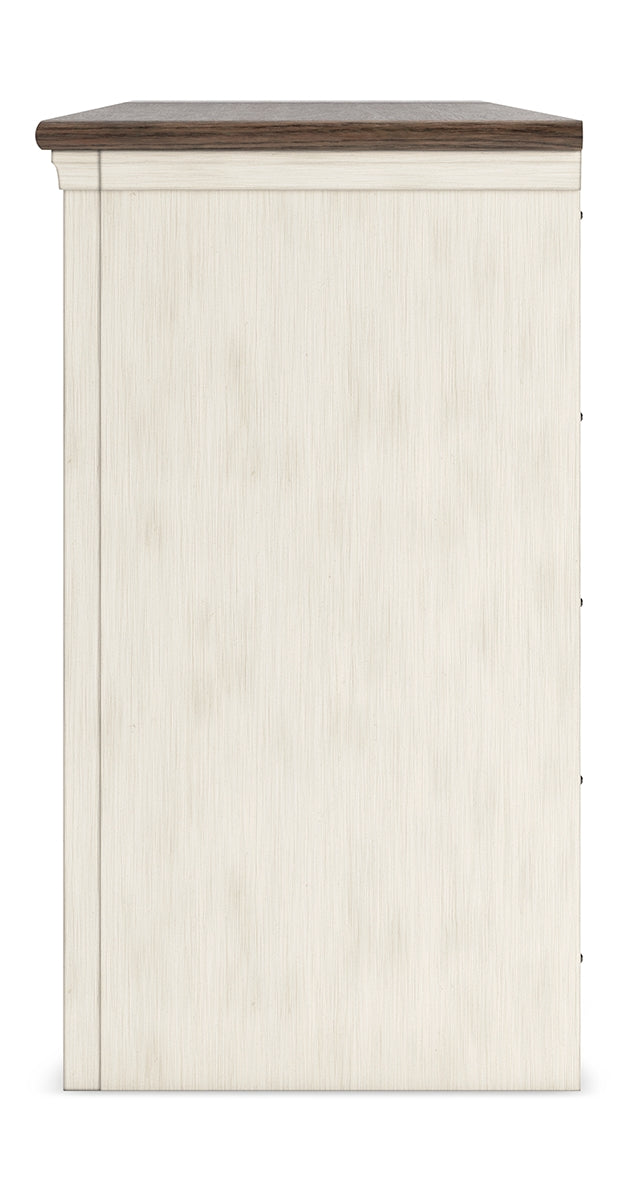 - Textured antiqued white finish with contrasting weathered gray top
