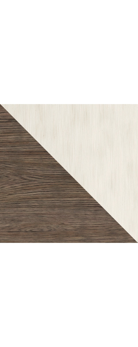 - Two-tone finish (weathered oak top over antiqued white)