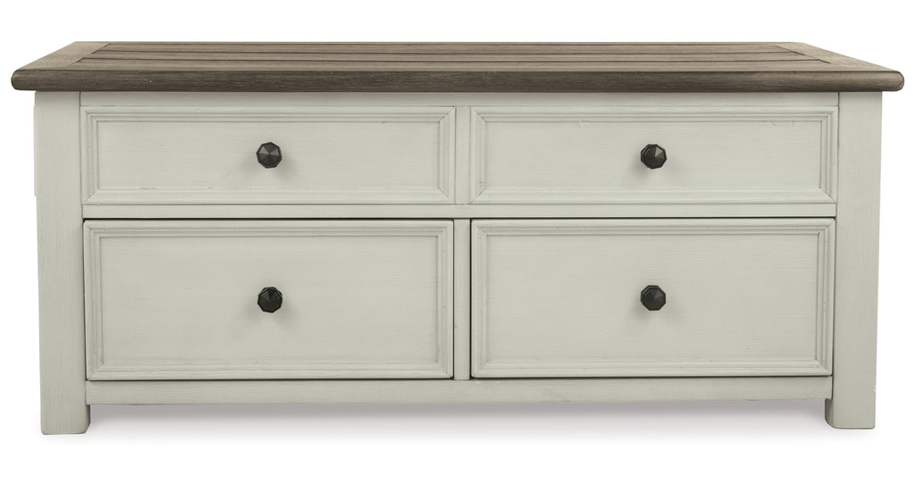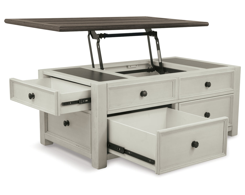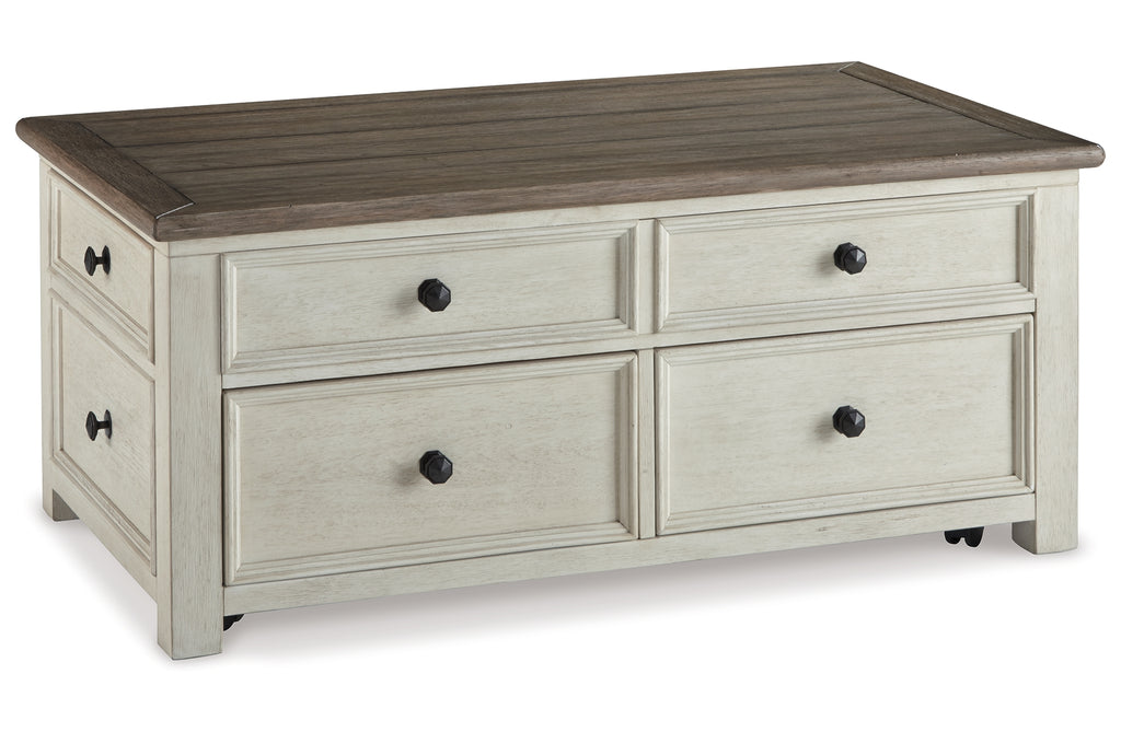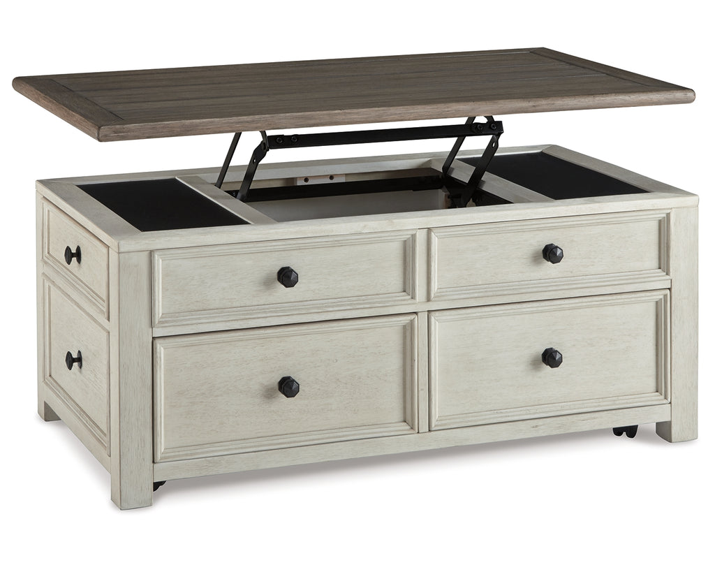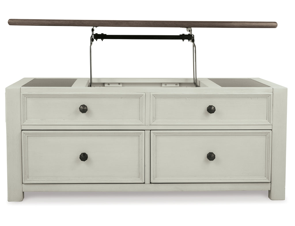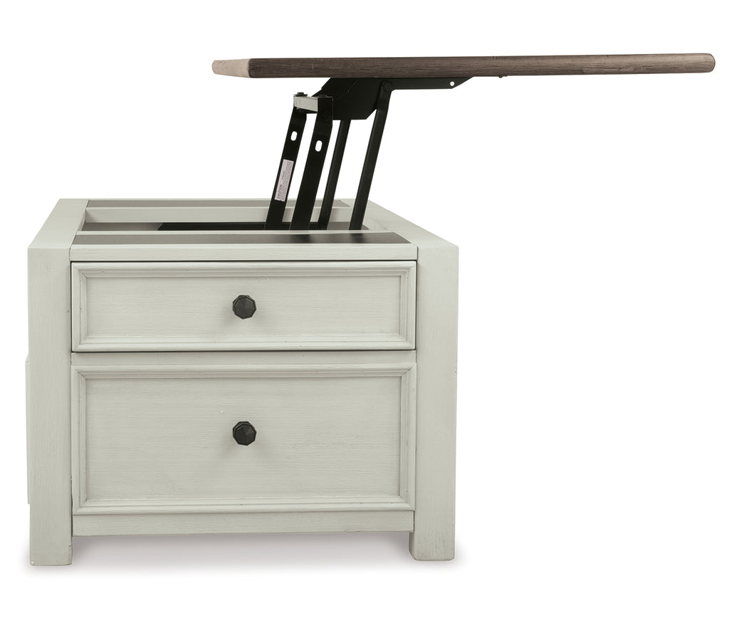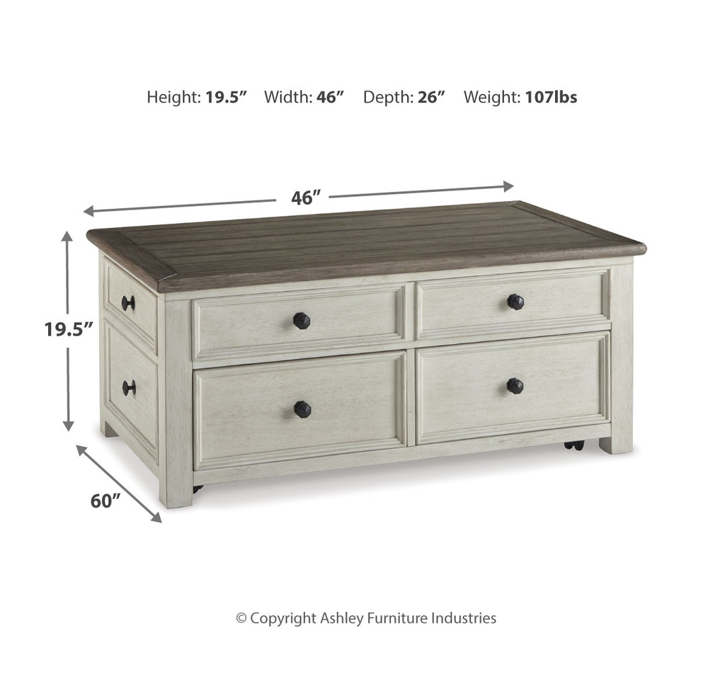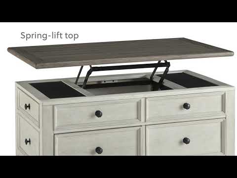 Store, serve and showcase your favorite things with this lift top coffee table. Its textured antique white finish creates a vintage two-tone look that will endure for years. | Product Features