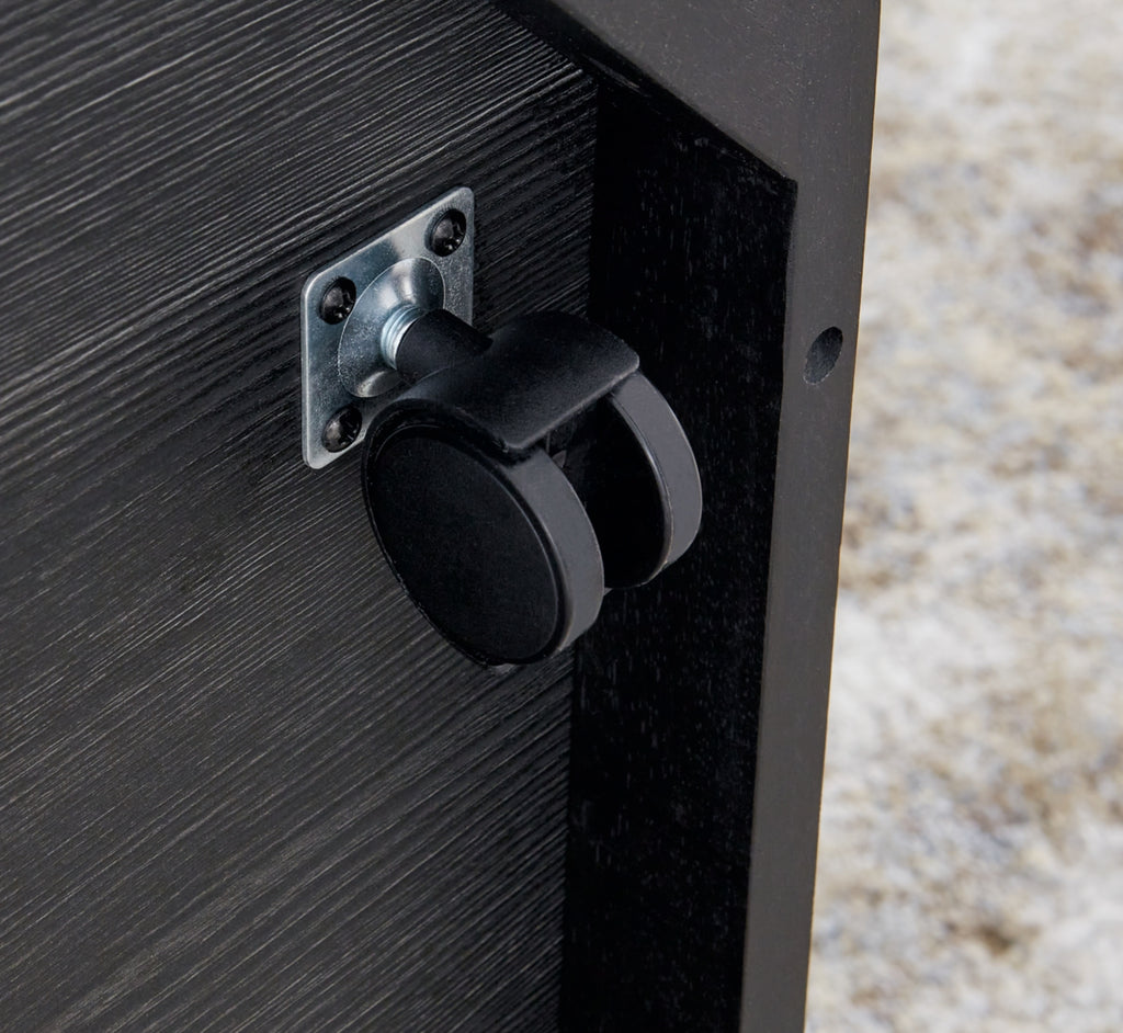 This table set combines casual contemporary design with modern appeal. Pairing a thick-bodied top with shelves and legs in a black wood grain finish, these tables are a smart choice on so many levels. Casters on the legs make the coffee table easily mobile for quick room transformations, making it more than just nice furniture anchoring your sofa. | Product Features