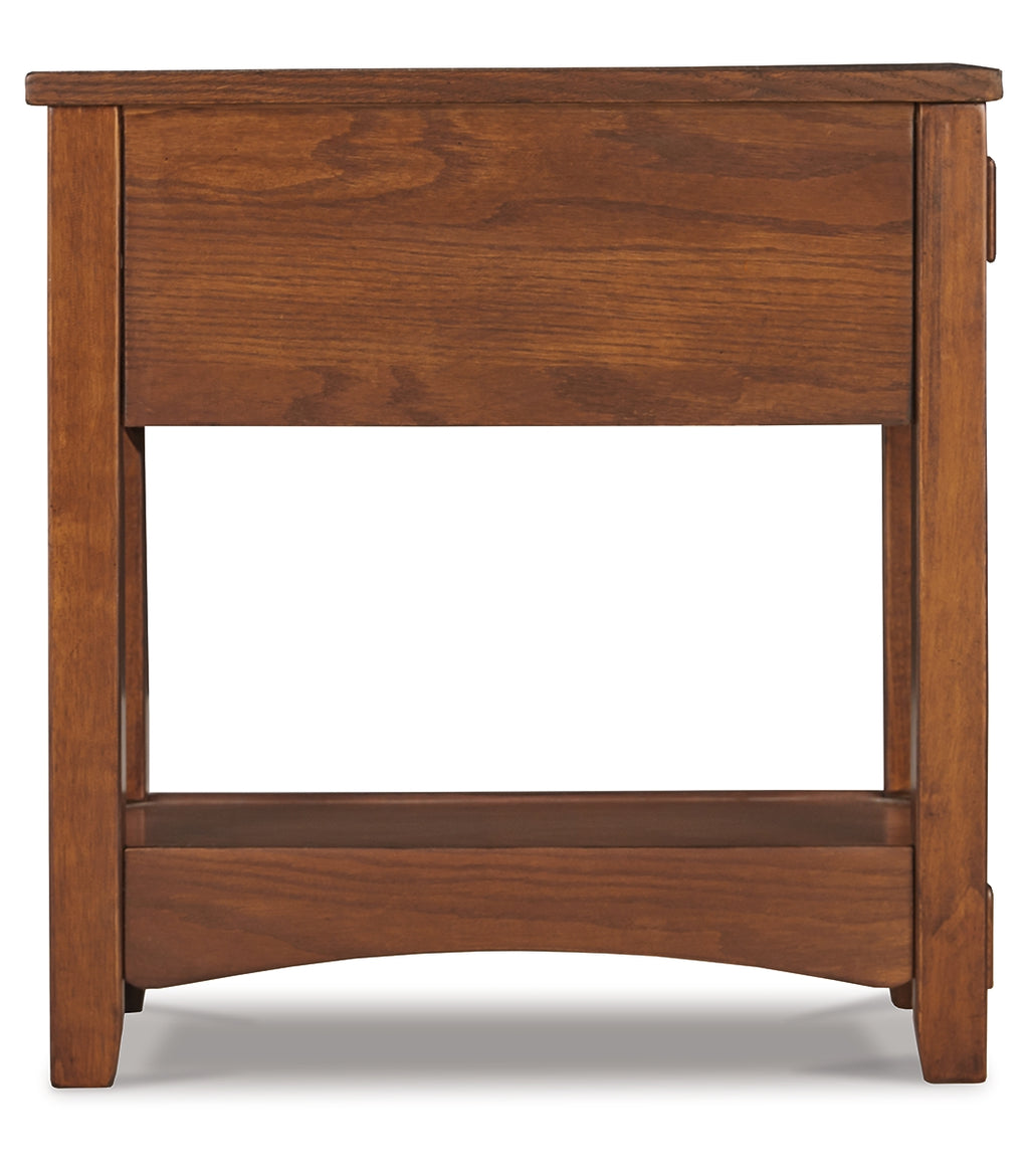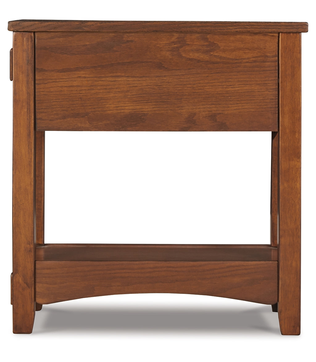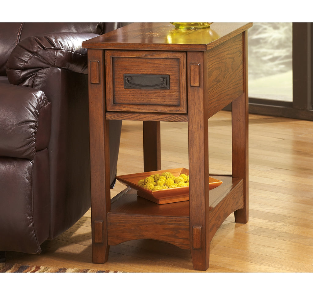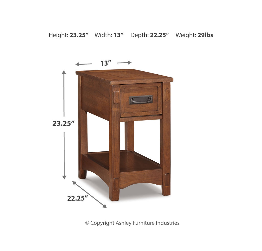 All the great elements of Mission-style design—including mortise-and-tenon decorative overlays—packed into an adorably sized chairside end table. Small but essential, this accent table includes a deep drawer with removable tray for handy storage. | Product Features