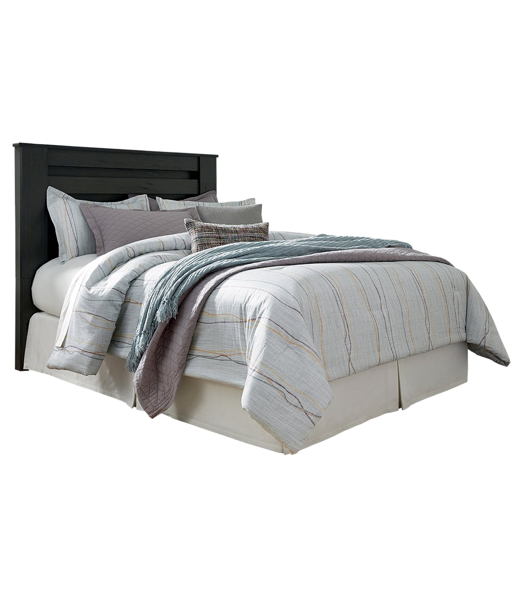 Priced to entice and styled to impress, this alluring king headboard is urban sophistication with a decidedly relaxed air. It’s got the crisp, clean lines of a contemporary piece, but with an earthy element. Deep, horizontal grooves infuse depth and dimension, which a replicated oak grain effect gives the charcoal gray finish warmth and character. Mattress, bed frame and foundation/box spring and sold separately. | Product Features