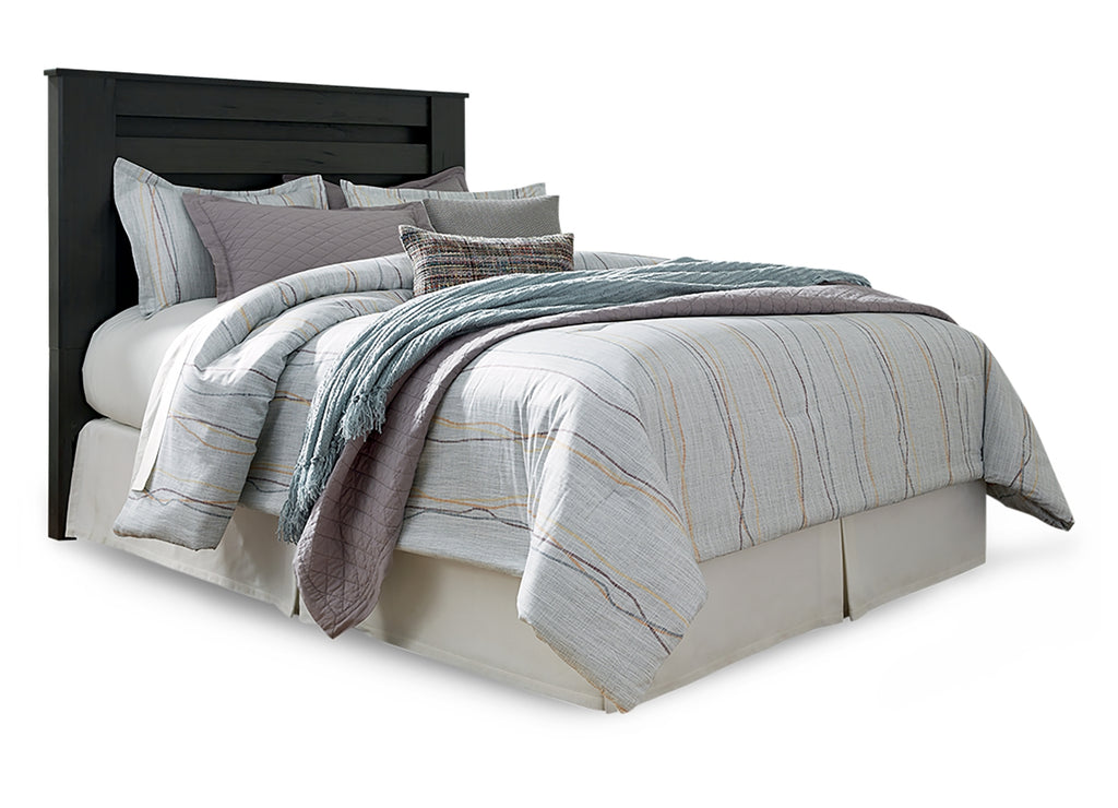 Priced to entice and styled to impress, this alluring queen headboard is urban sophistication with a decidedly relaxed air. It’s got the crisp, clean lines of a contemporary piece, but with an earthy element. Deep, horizontal grooves infuse depth and dimension, while a replicated oak grain effect gives the charcoal gray finish warmth and character. | Product Features