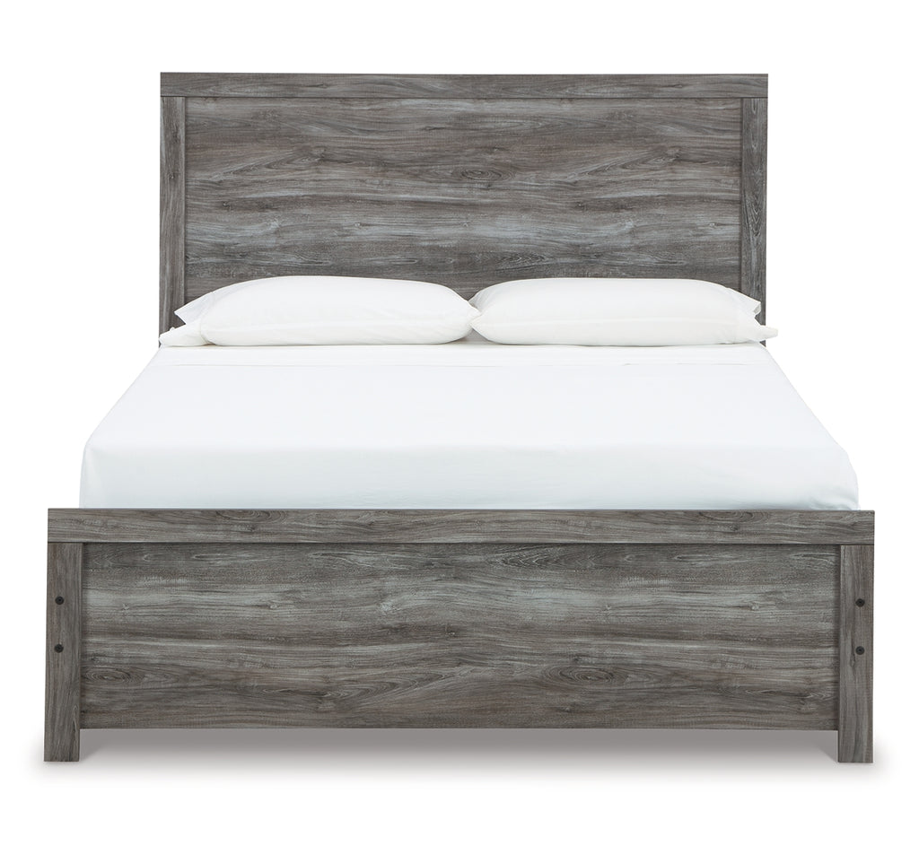 Alluring smoky gray hues create an ambiance that just feels right. This queen panel bed has a charming wood-like appeal enriched by neutral tones and a textured look. Its calming presence brings a sense of serenity to your space.