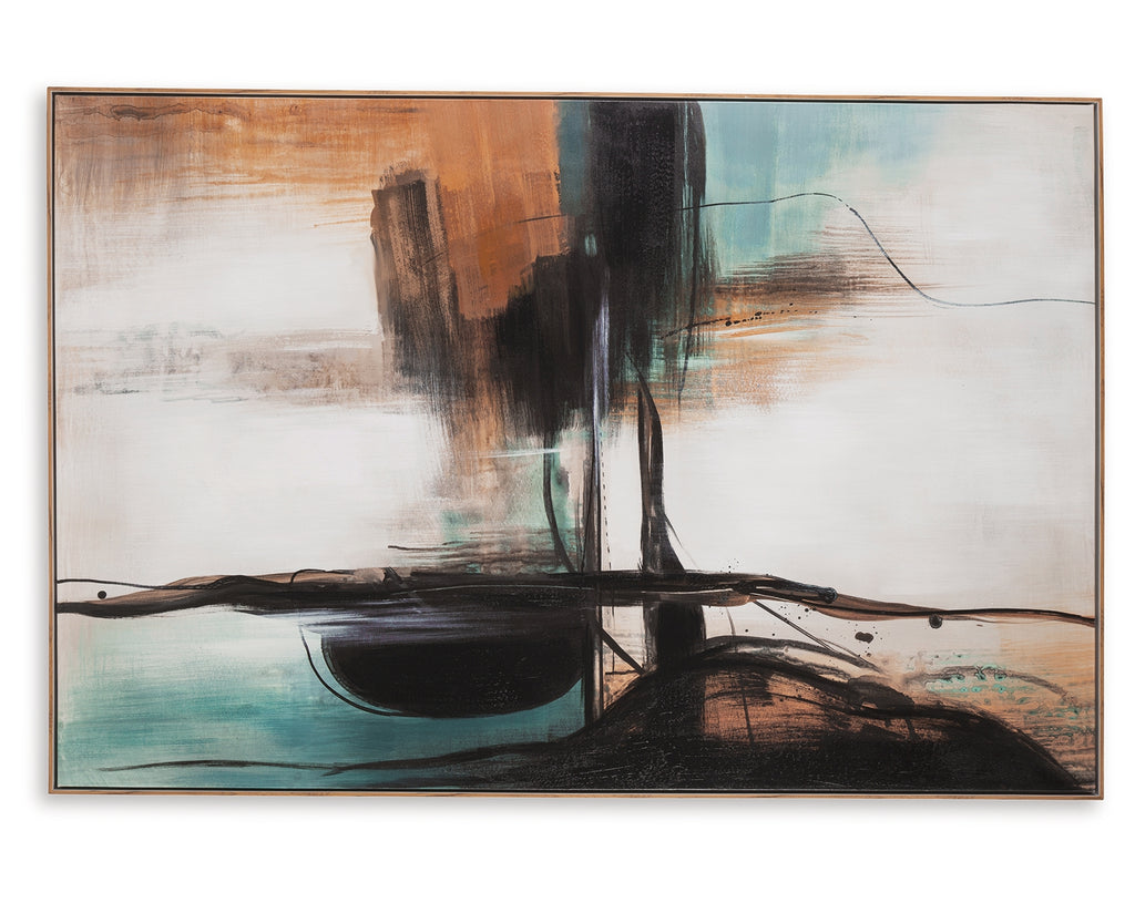 Decidedly modern, this wall art harmonizes beautifully with existing pieces in your contemporary space. Striking shades pair together to create bold curves with a sense of motion. It adds a pop of color to your decor while remaining understated in design.