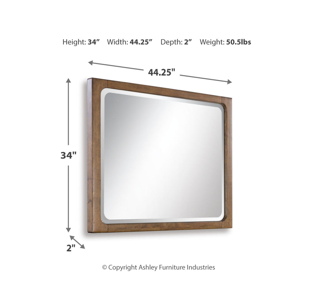 This bedroom mirror is made with hardwood solids, hickory veneer and MDF substrates. Pairs with other items in the series to make a dresser and mirror kit. | Product Features - Compatible with other B974 items, sold separately