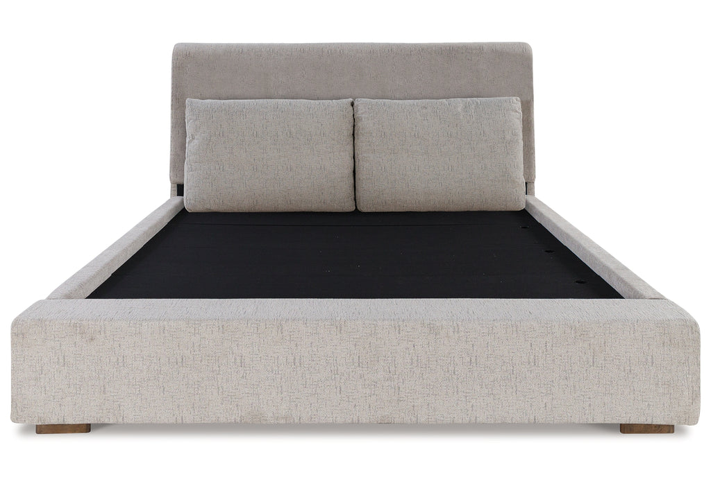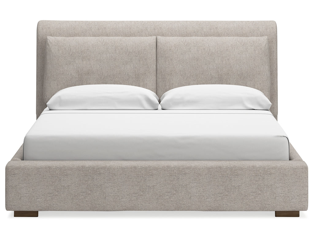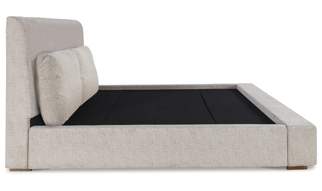 This king upholstered bed sits comfortably at the intersection of modern lodge and farmhouse aesthetics. Your warm and welcoming disposition is reflected in its subtly tapered headboard and all-over upholstery. Even with its poise, the bed remains practical. Loose pillows on the headboard keep comfort a priority as you lay back to read or watch TV, defining your bedroom with reliable function and style.