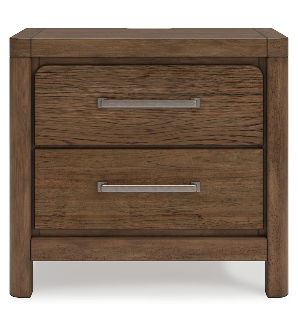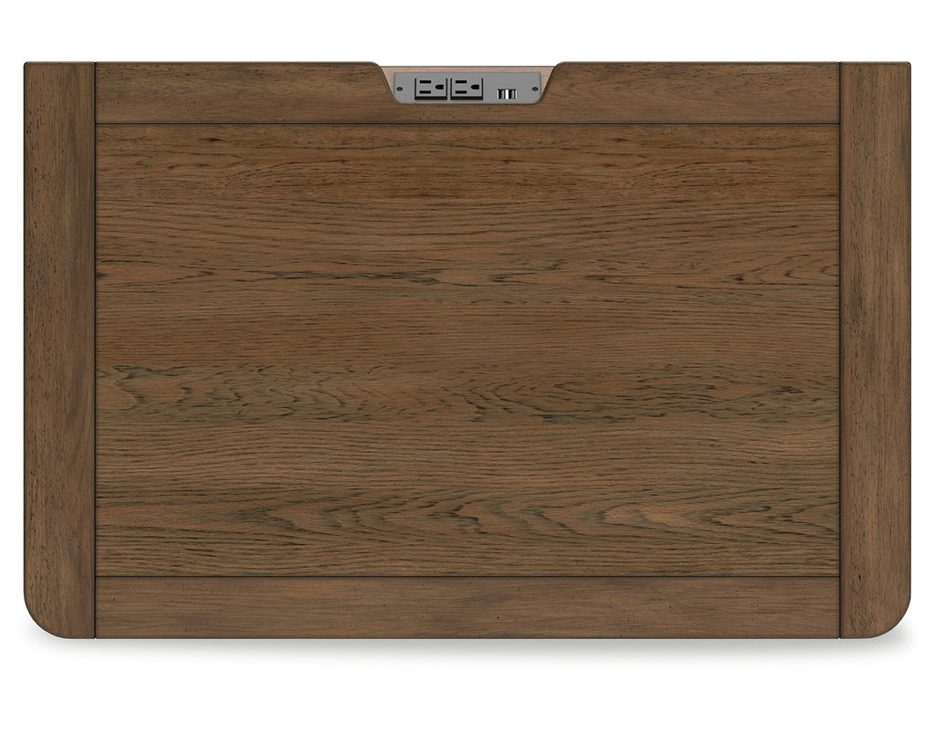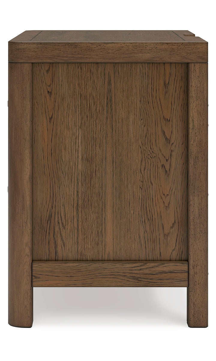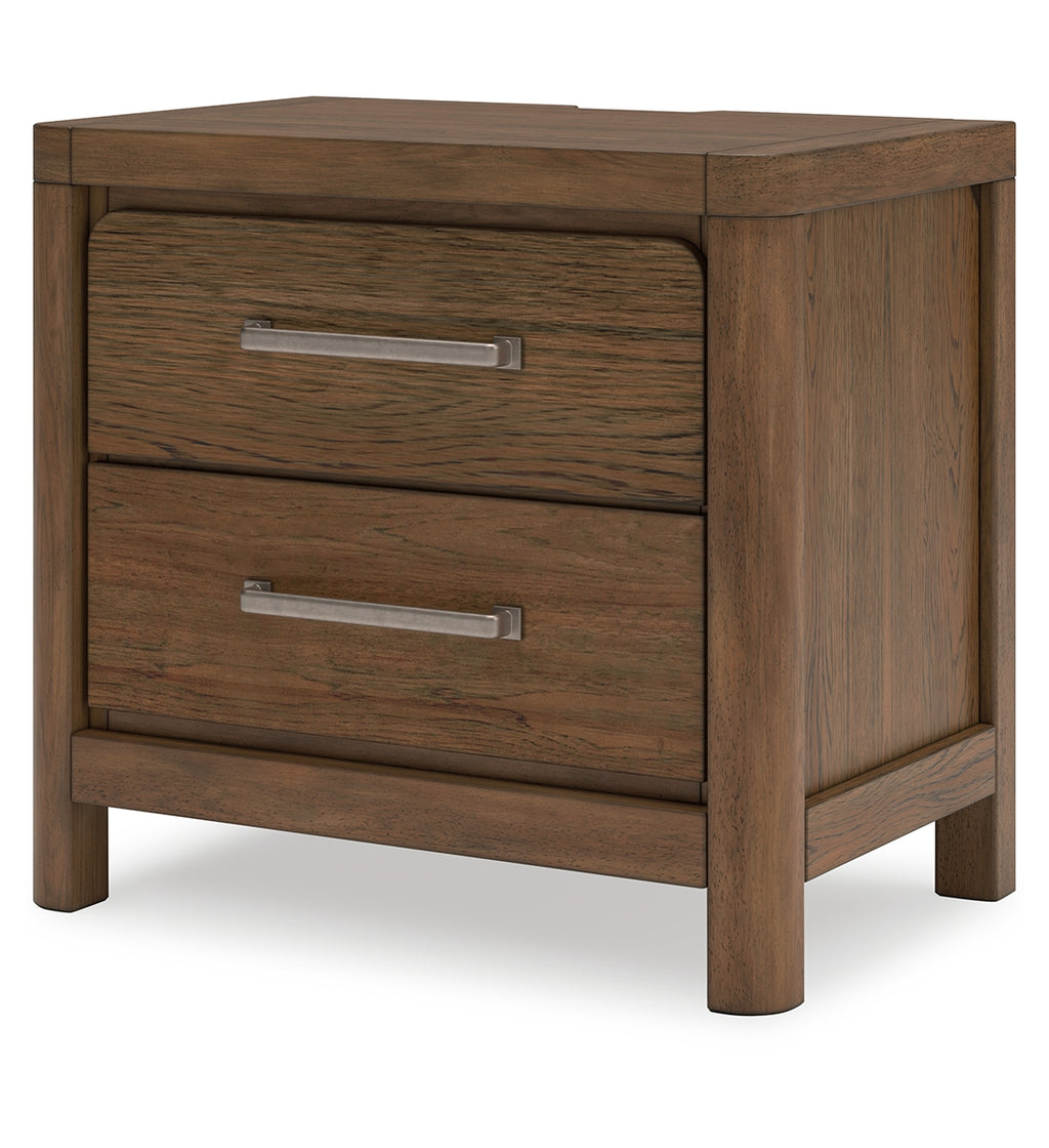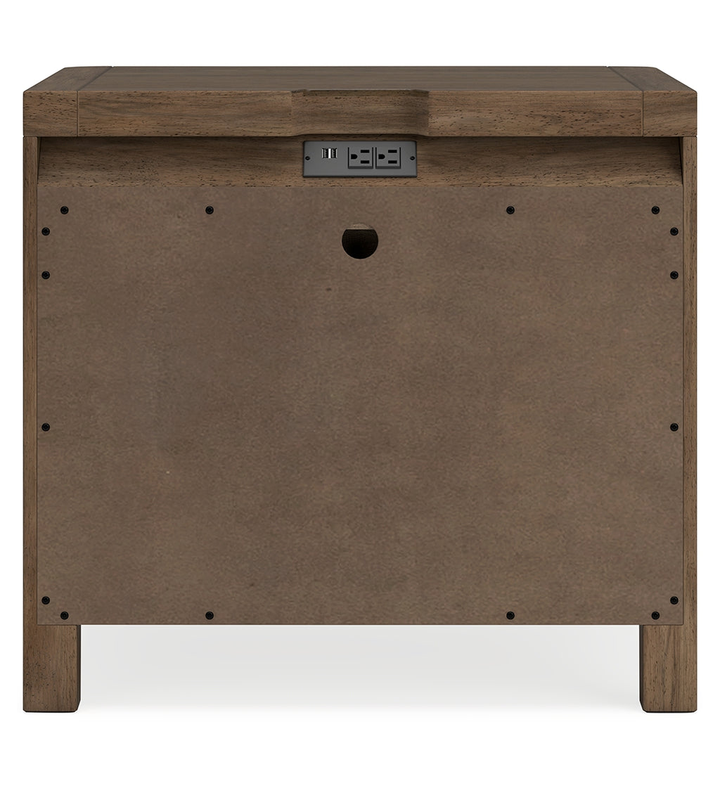 This nightstand sits comfortably at the intersection of modern lodge and farmhouse aesthetics. Your warm and welcoming disposition is reflected in the charming architectural elements and light brown glazed finish. Even with its poise, the nightstand remains practical. Included USB ports keep you charged up for late-night scrolling, defining your bedroom with reliable function and style. | Product Features
