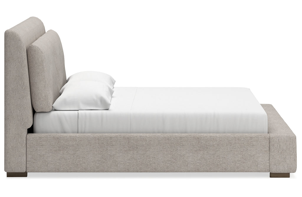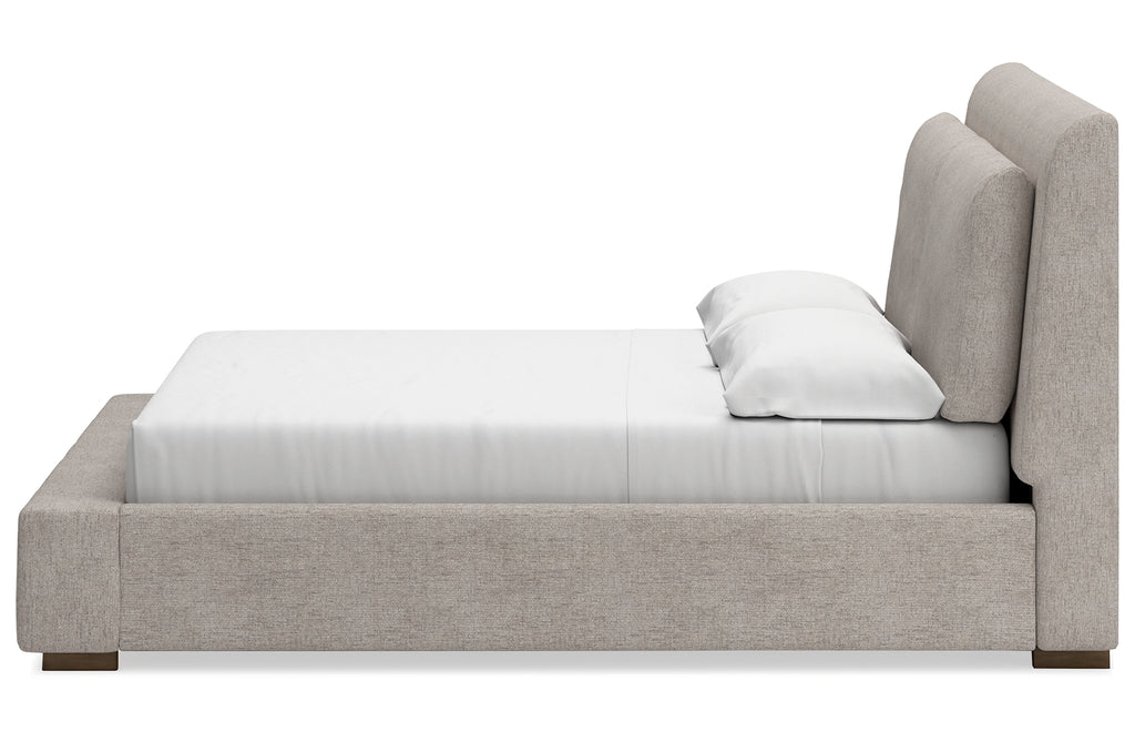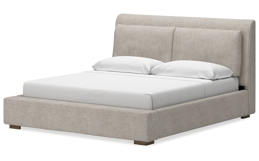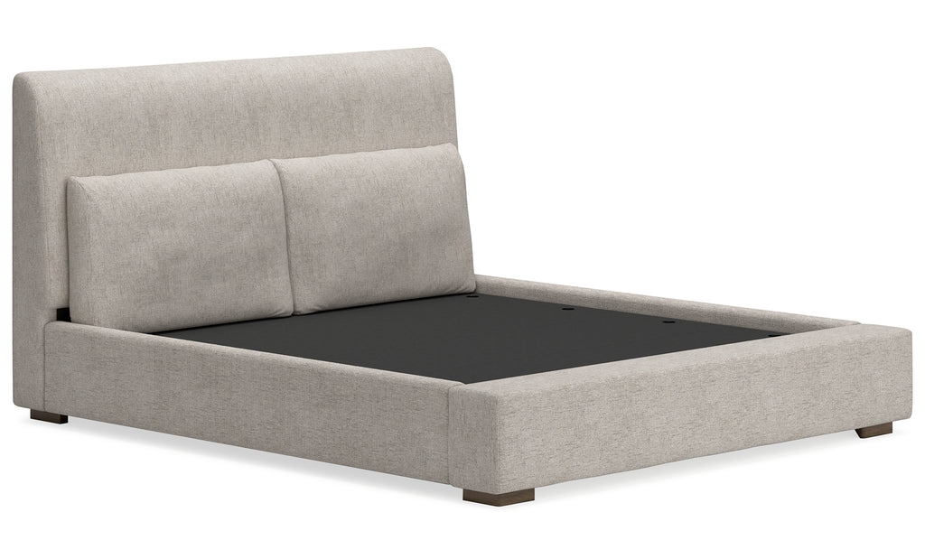 This queen upholstered bed sits comfortably at the intersection of modern lodge and farmhouse aesthetics. Your warm and welcoming disposition is reflected in its subtly tapered headboard and all-over upholstery. Even with its poise, the bed remains practical. Loose pillows on the headboard keep comfort a priority as you lay back to read or watch TV, defining your bedroom with reliable function and style.