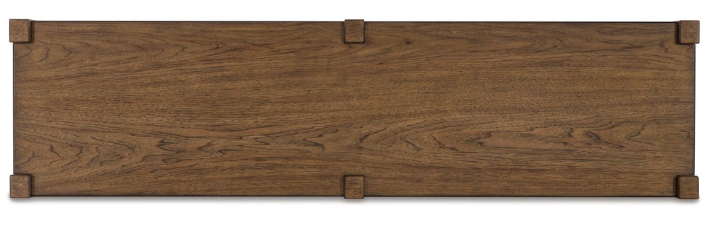 This sofa table sits comfortably at the intersection of modern lodge and farmhouse aesthetics. Your warm and welcoming disposition is reflected in the charming architectural elements and light brown glazed finish. Even with its poise, this table remains practical. With its multifunctional design, it doubles as a stunning TV stand or as a bookcase in the office. | Product Features
