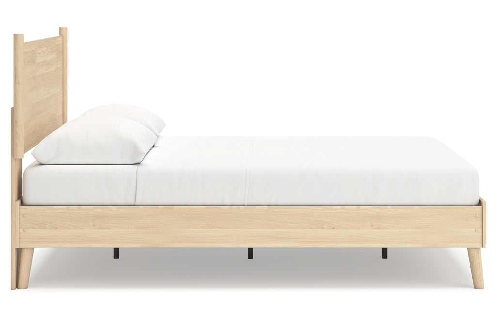 This queen platform panel bed brings on-trend style and a sense of serenity to the bedroom. It eliminates the expense of a foundation/box spring, allowing you to splurge on the mattress of your dreams (sold separately). Best of all, the natural wood finish and relaxed warmth complement any interior design. |