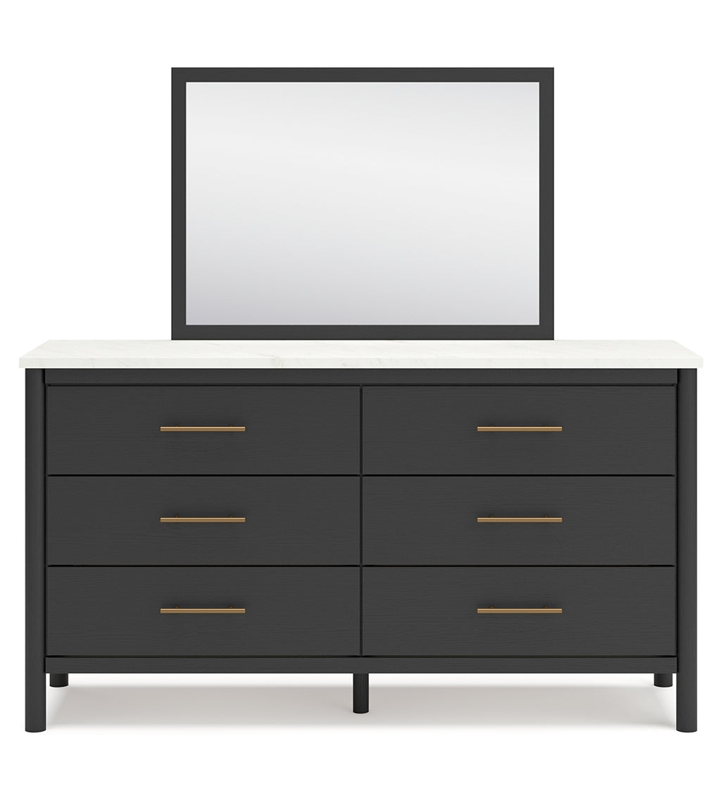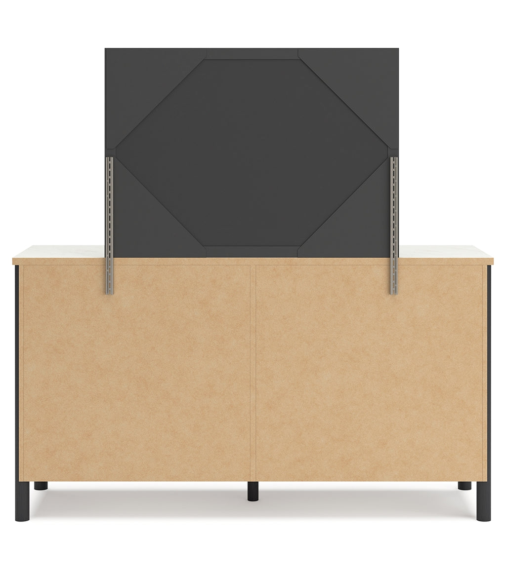This dresser and mirror set reflects your sophisticated approach to boho style. Crafted with both form and function in mind, its replicated marble top beautifully contrasts a matte black finish. The versatile design suits all-neutral spaces or blends with your favorite pops of color. It’s inviting, yet posh. Luxe, yet laid-back. With this set, your free-spirited vibe meets modern design. | Product Features