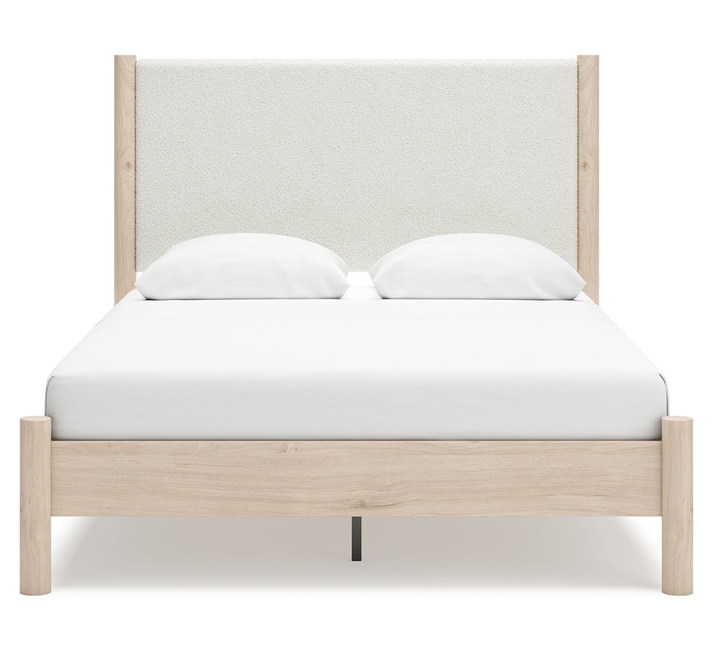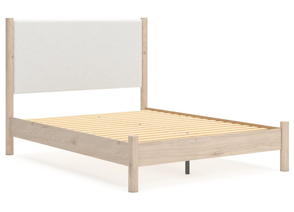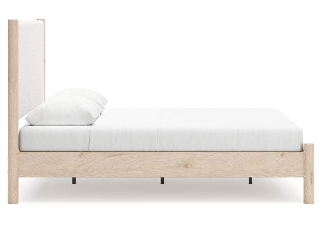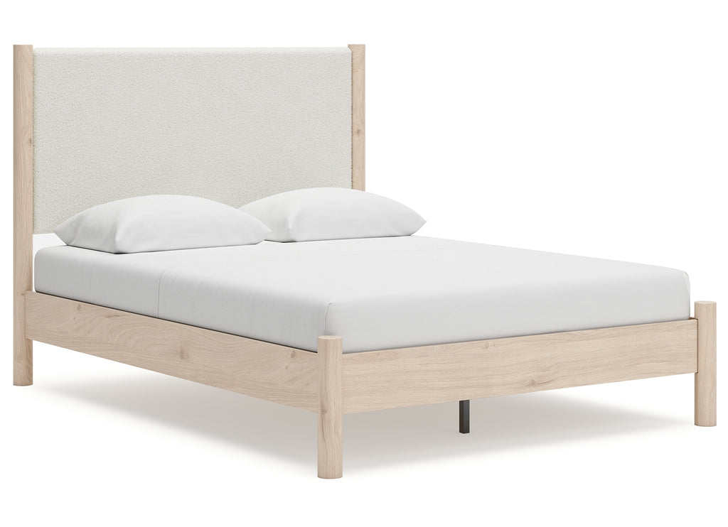 Transform your bedroom with this queen upholstered panel bed. With clean lines and textured fabric, it exudes a minimal and sophisticated boho style. Tailor your space and create the perfect environment for sweet dreams. | Product Features