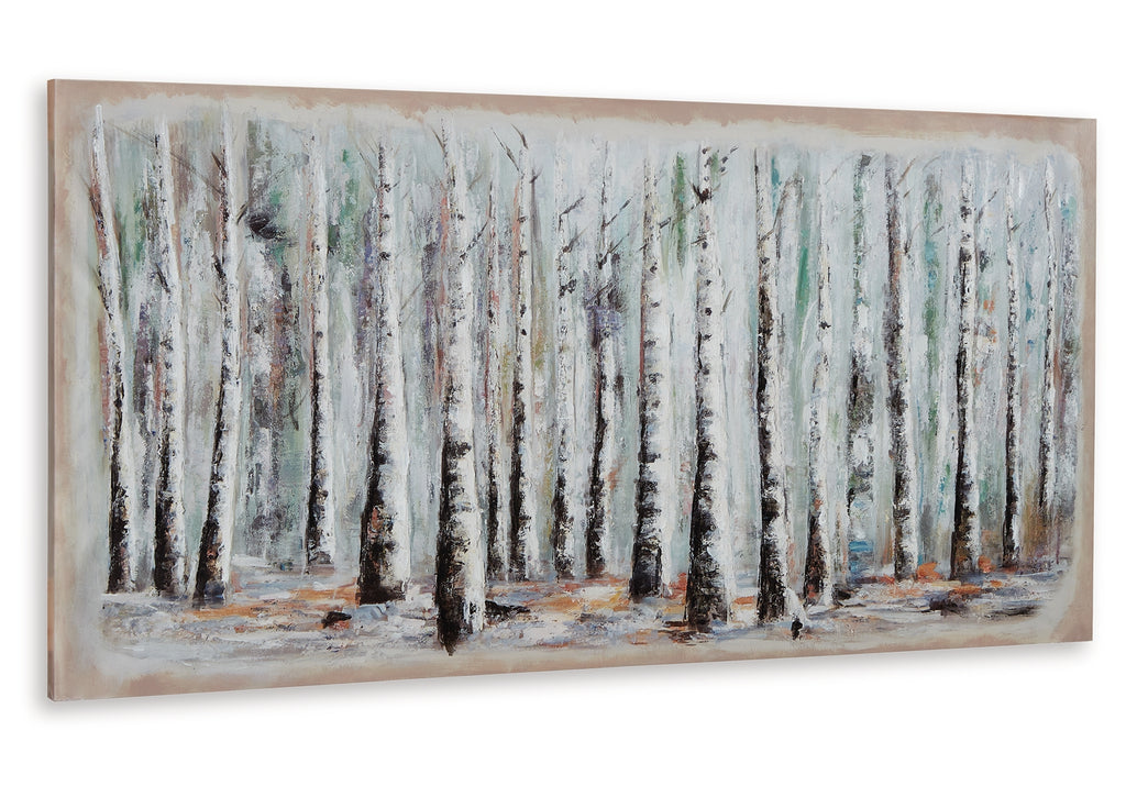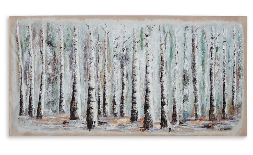 Bring the beauty of nature indoors with this wall art. Its shades and shadows invite you into the treescape, with hand-painted embellishments adding stunning detail. Hang this statement piece in the living room or a home office to incorporate a tranquil touch.