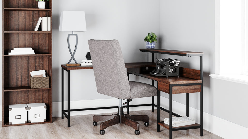 Whether you lean towards modern farmhouse or urban industrial design, the clean-lined profile of this L-desk with hutch is an essential component to any well-equipped home office. Sleek and slim, it’s just enough furniture to complete your space without overloading your look. | Product Features