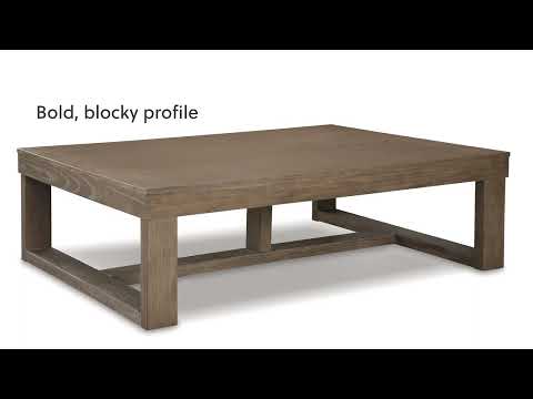 Oversized yet far from overdone, this designer coffee table masters the art of simplicity. Bold, blocky profile is enriched with plank-effect styling and a textured grayish brown finish for a look that’s cool and contemporary and a vibe that’s warm and inviting. Its generous scale makes it a natural complement for spacious sectionals. | Product Features