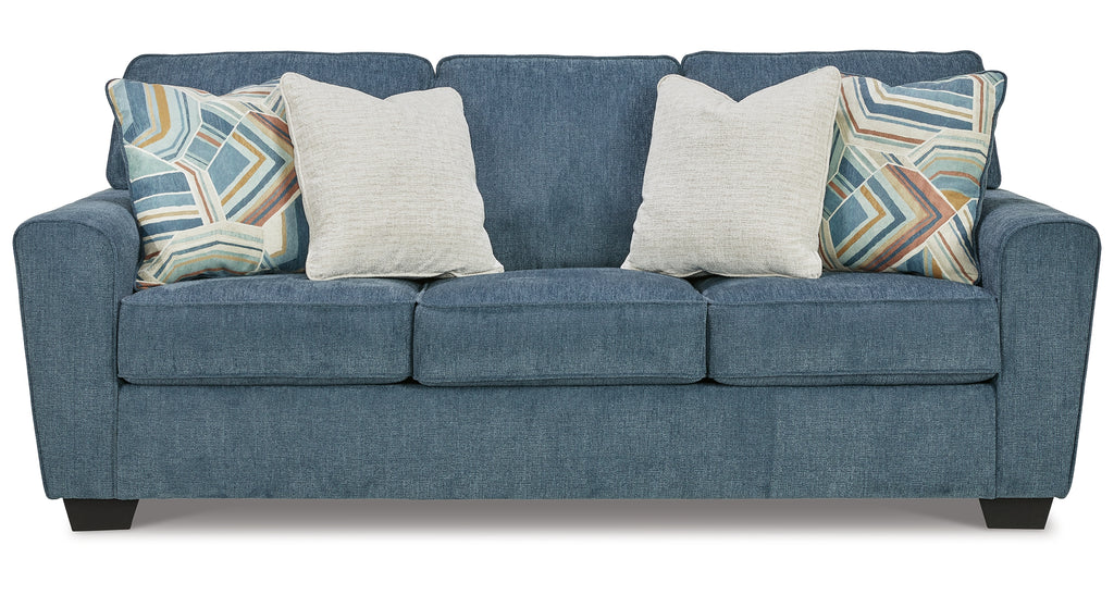 Need a simple style refresh? Liven up your living room essentials with this sofa. A chunky silhouette holds invitingly ample cushioning you’ll long to lounge in. Crosshatched upholstery and accent pillows give the otherwise casual design a delightful visual texture that's perfect for settings from classic to contemporary. | Product Features