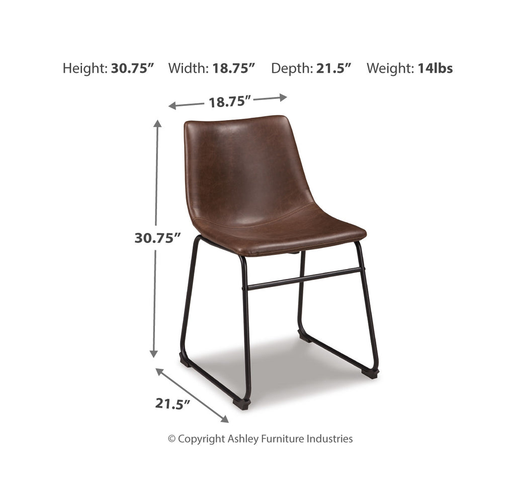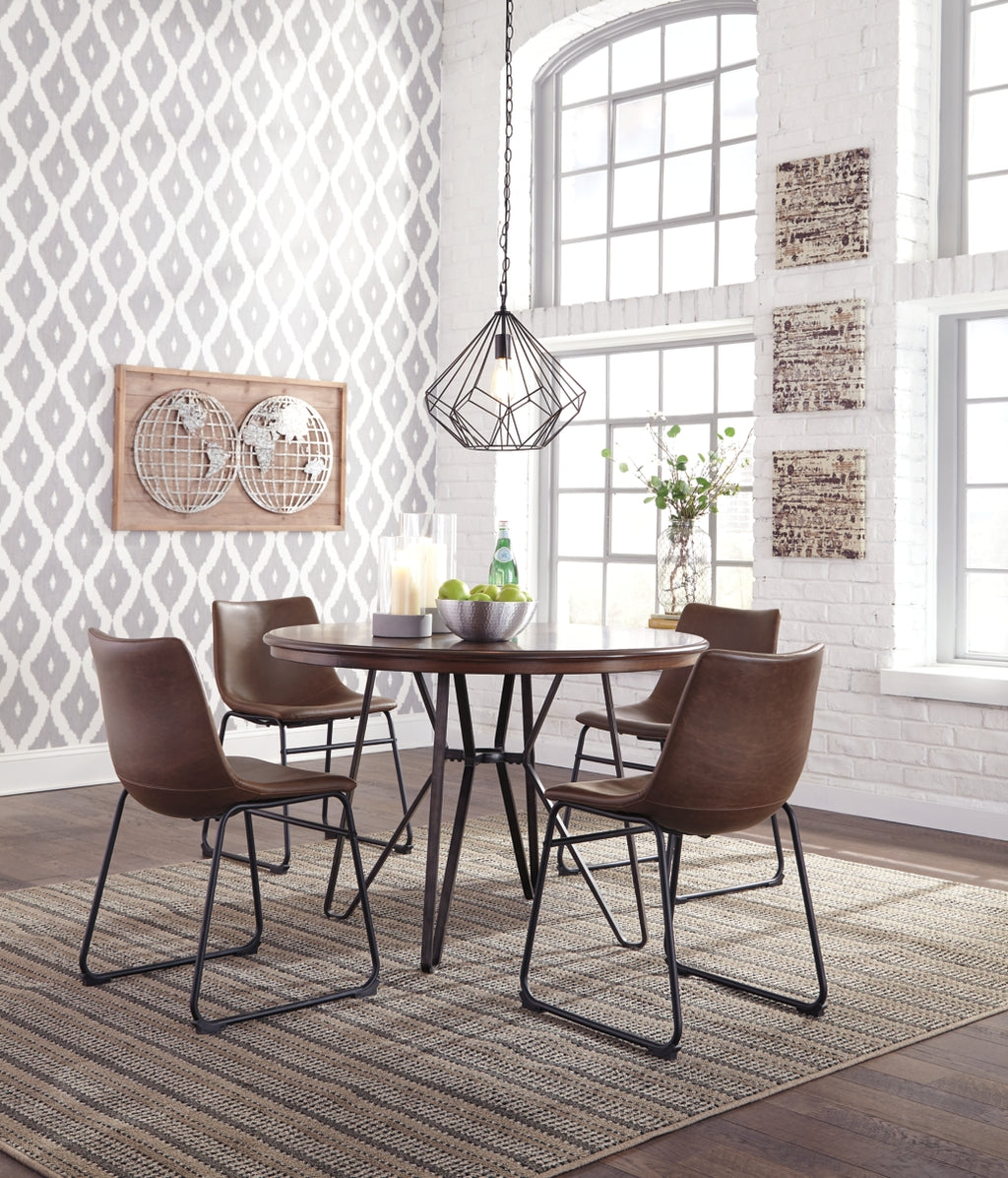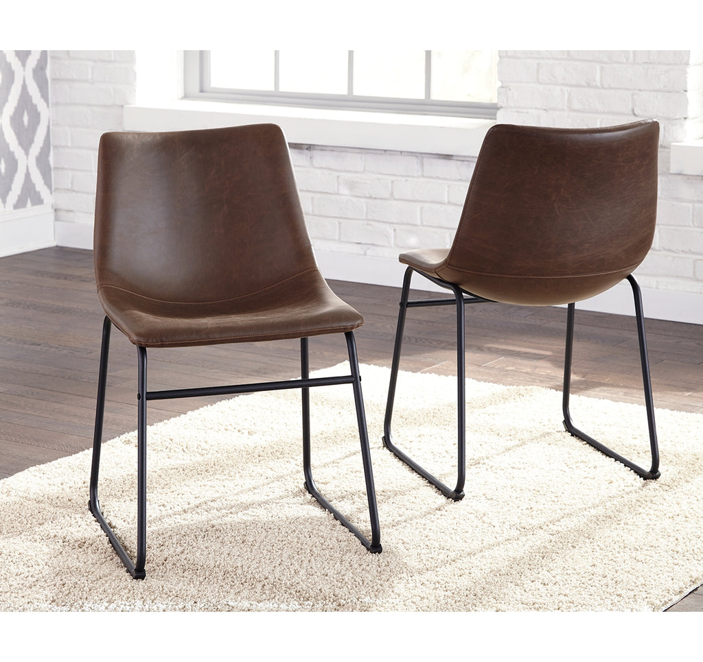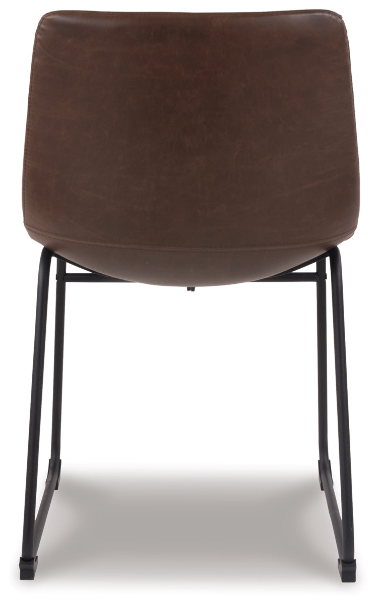 With its distinctive contoured bucket seat and tubular metal base, this dining chair serves up a fresh twist on mid-century inspired style. Faux leather upholstery has a charmingly vintage tone. What a timeless look for eat-in kitchens and casually cool dining rooms. | Product Features