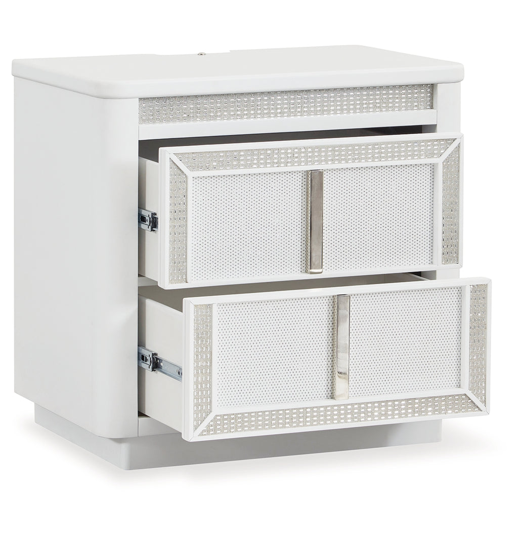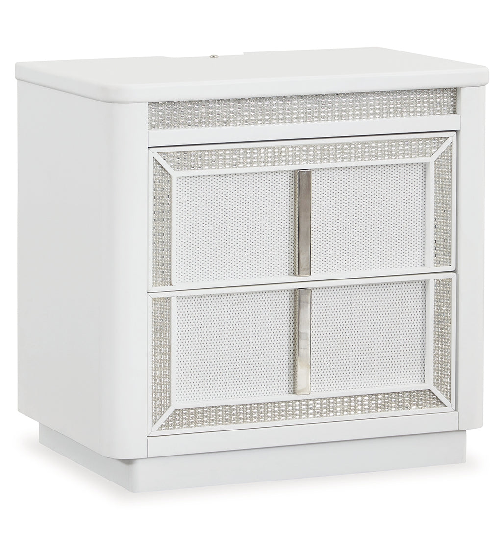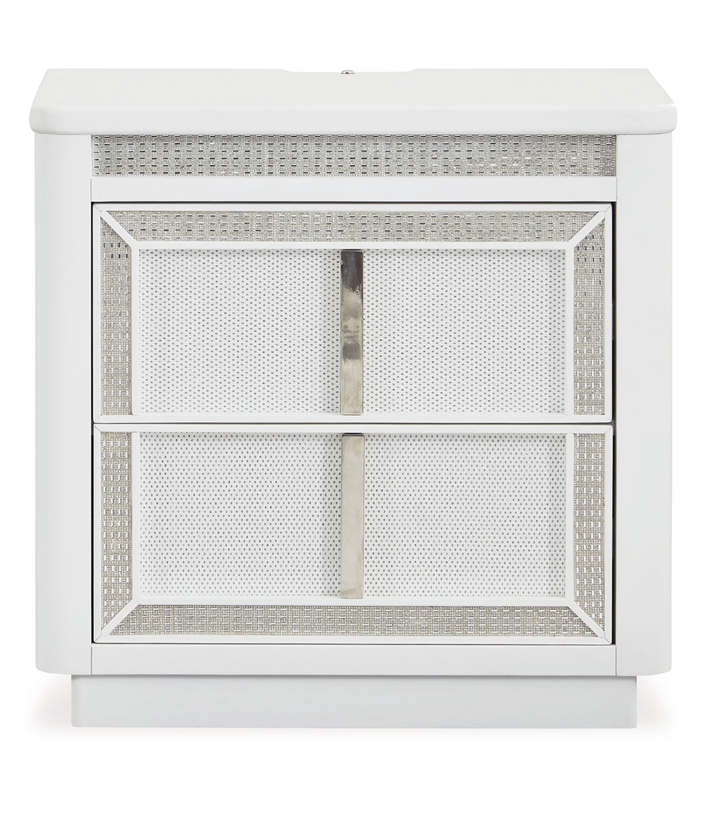 Transform your bedroom with this nightstand. Its modern design and glamorous details create a sophisticated retreat. The built-in LED lighting and rhinestone-framed drawers add style and practical storage, while USB charging keeps you connected. Let your sanctuary shine and never let anyone dull your sparkle. | Product Features