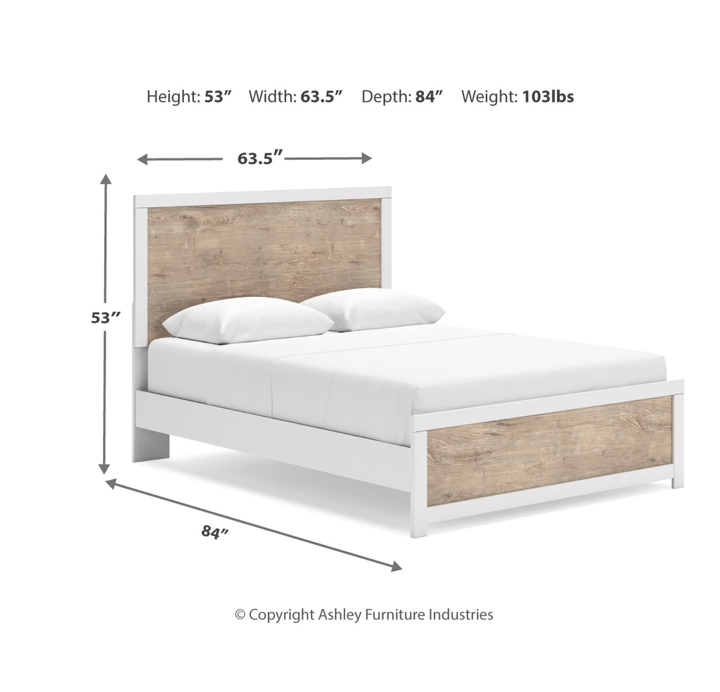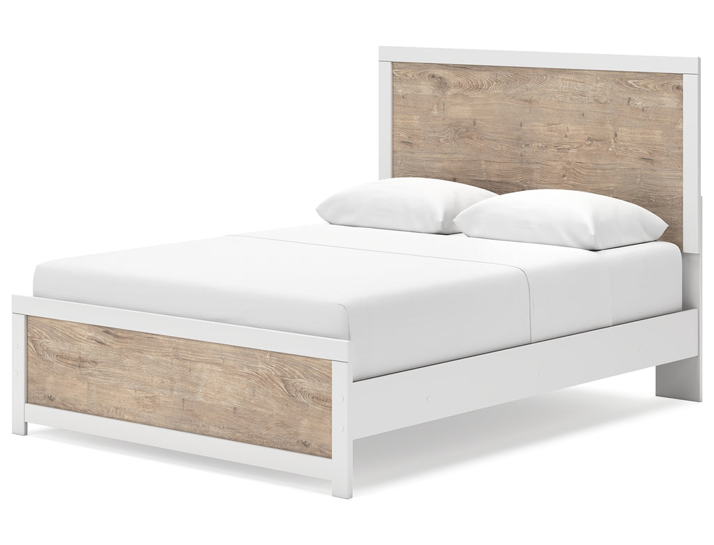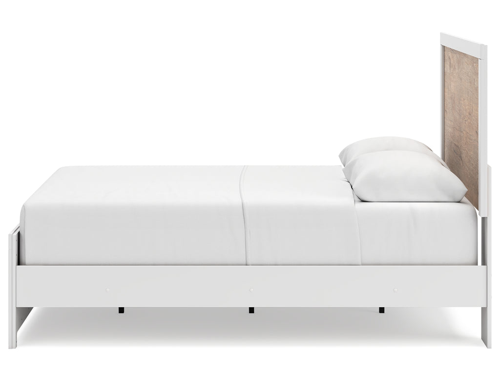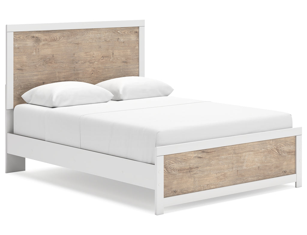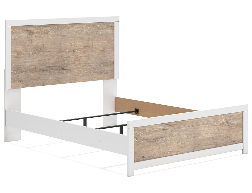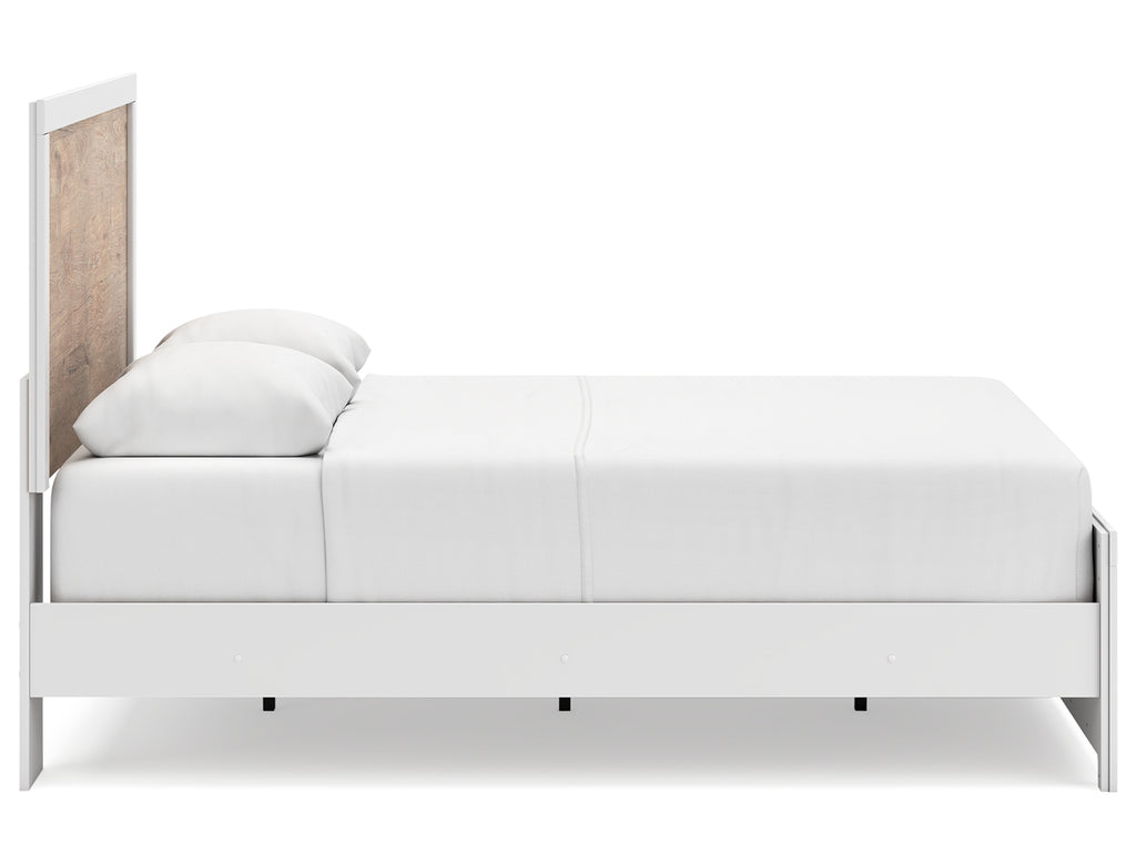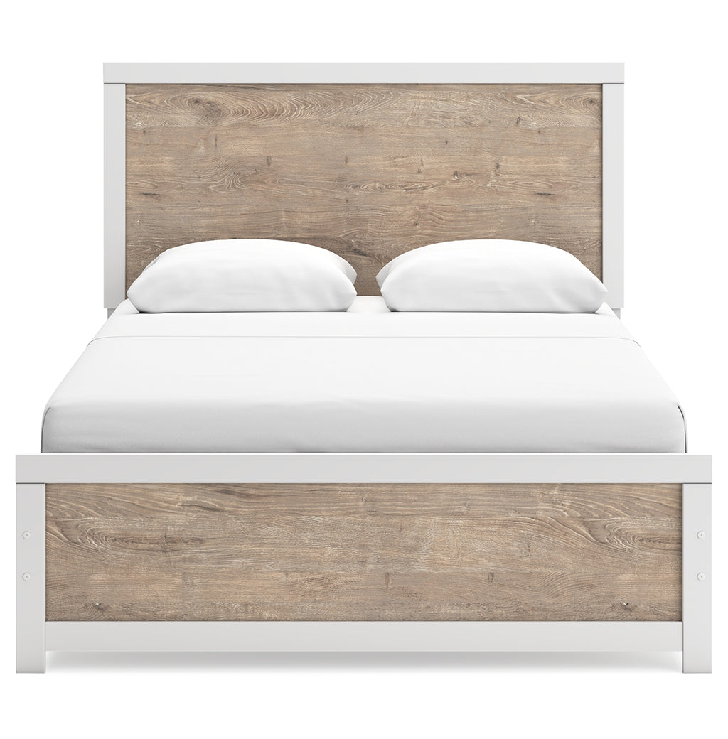 Relaxed yet striking, this queen panel bed brings casual beauty and function to your dream destination. A delightful two-tone treatment blends a fresh, replicated oak grain with a matte white finish that's easy to love. Its simplicity lends a contemporary touch that suits your bedroom's style to a T. | Product Features