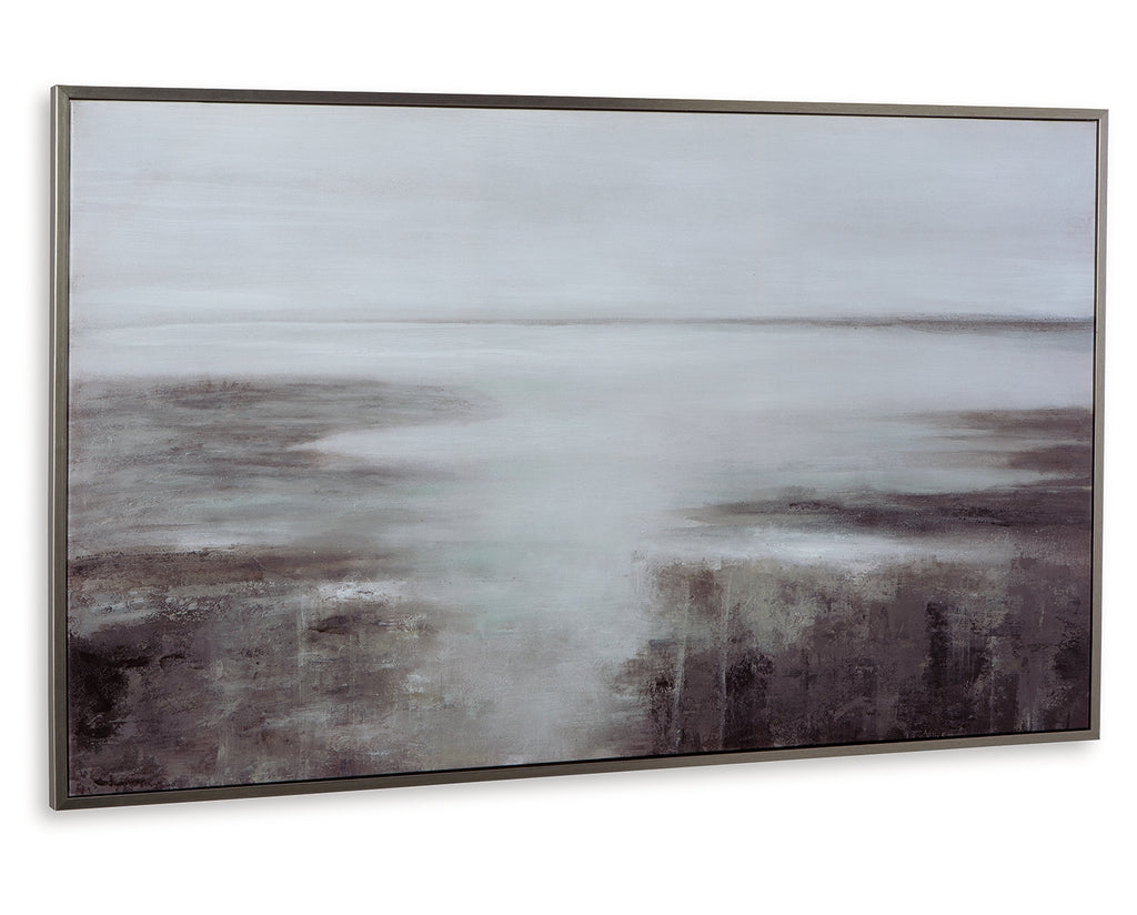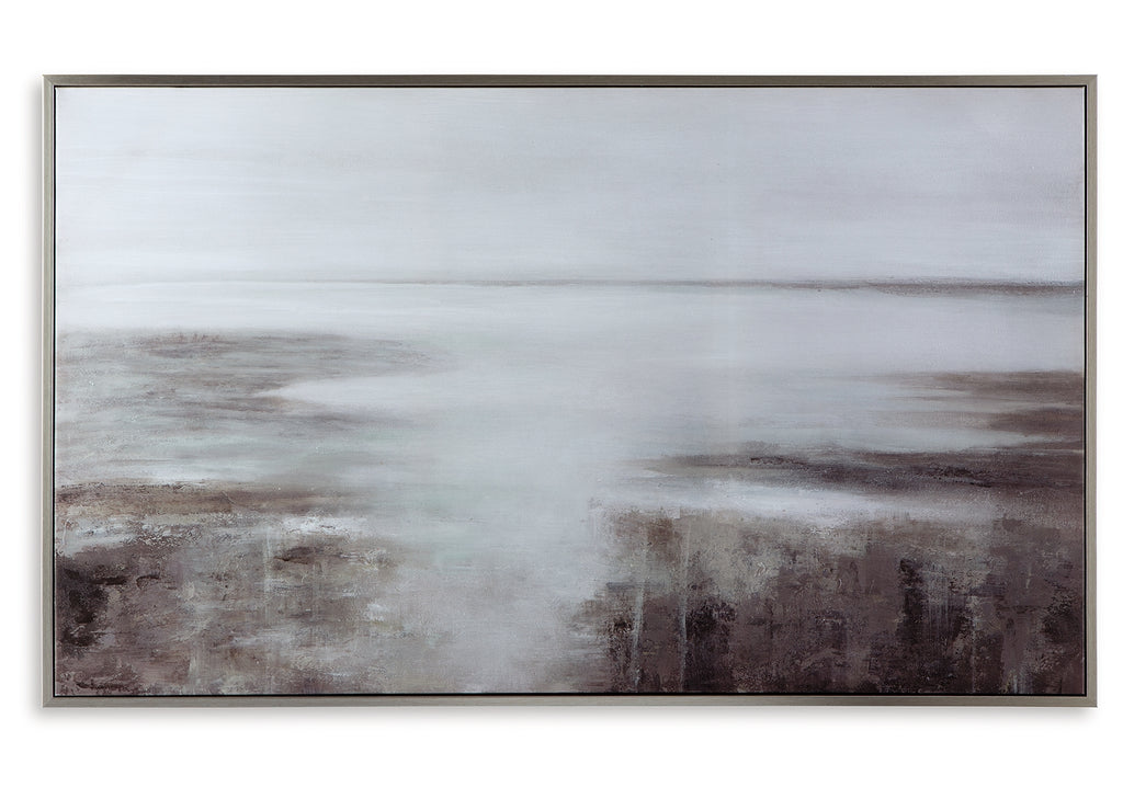 Coastal meets casual contemporary in this wall art. The piece recalls the placid movement of water, transforming shades of gray, taupe and white into a peaceful waterscape. Framed and ready to hang, it ushers a soothing seaside mood into your space. | Product Features