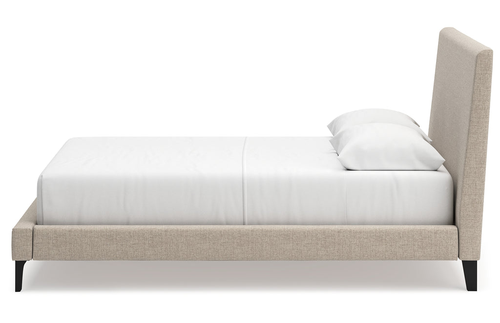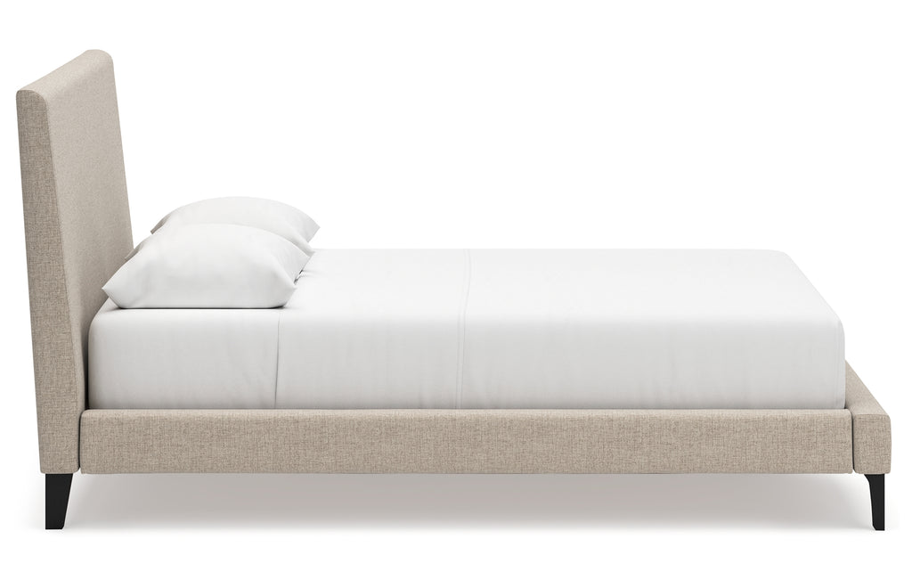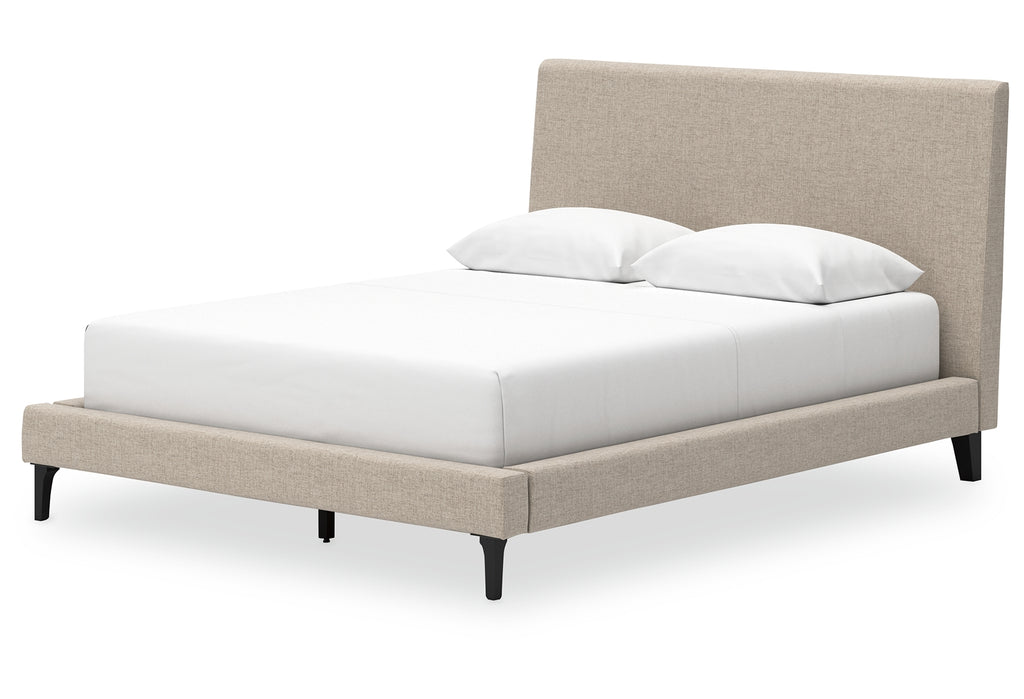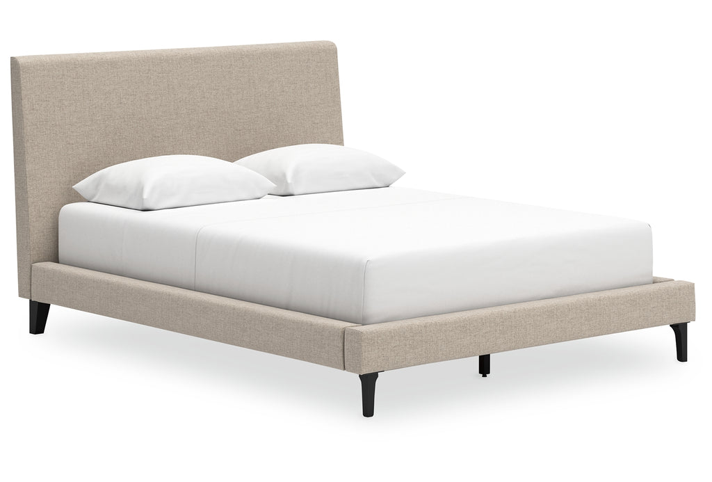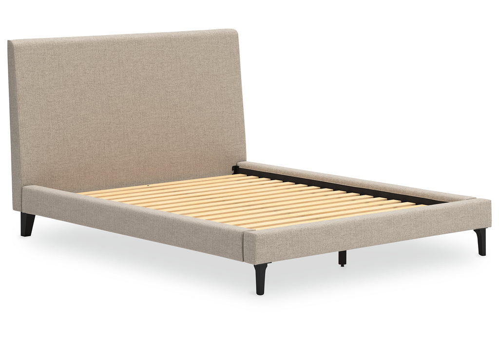 Clean-lined and contemporary—but far from stark—this queen upholstered bed with roll slats is a fresh style awakening. Its sleekly simple low profile and soft gray woven fabric play perfectly with the modern aesthetic and calming mood you long for in your tranquil retreat. | Product Features