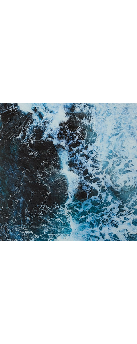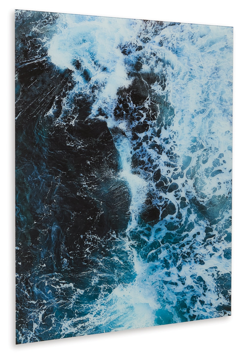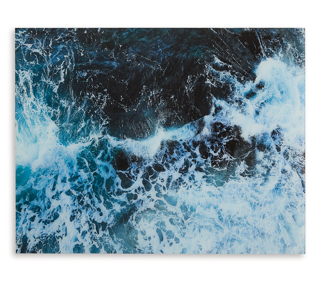 Like waves kissing the shoreline as they crash, this print on glass reminds you of the tide pulling out to sea. Swirling turquoise hues form a mesmerizing image of the ocean with foamy white caps. Perfect for ocean lovers or coastal cottages, this maritime art is sure to make a statement.