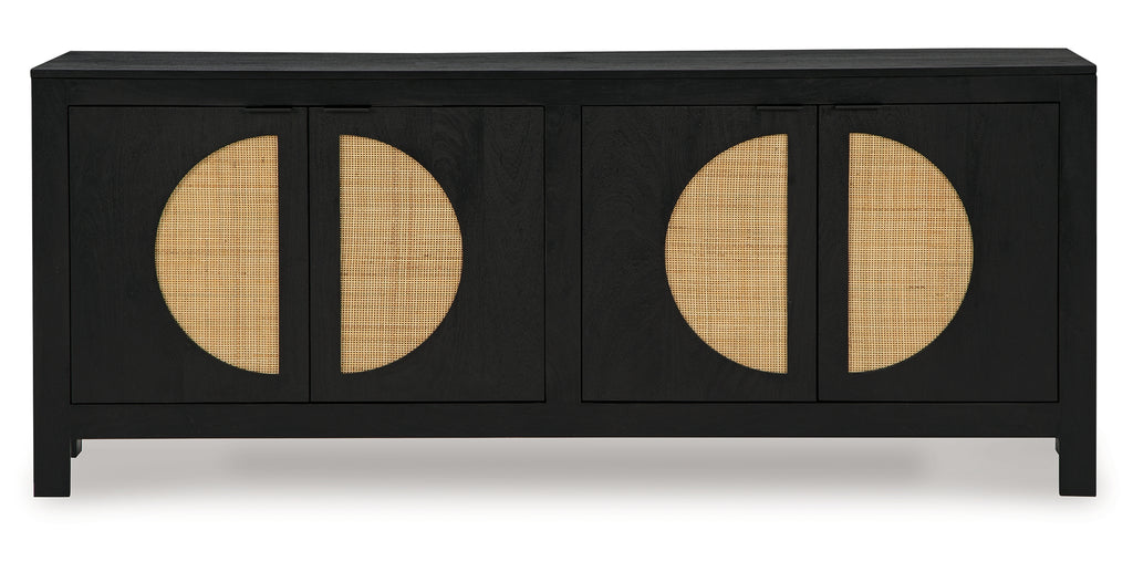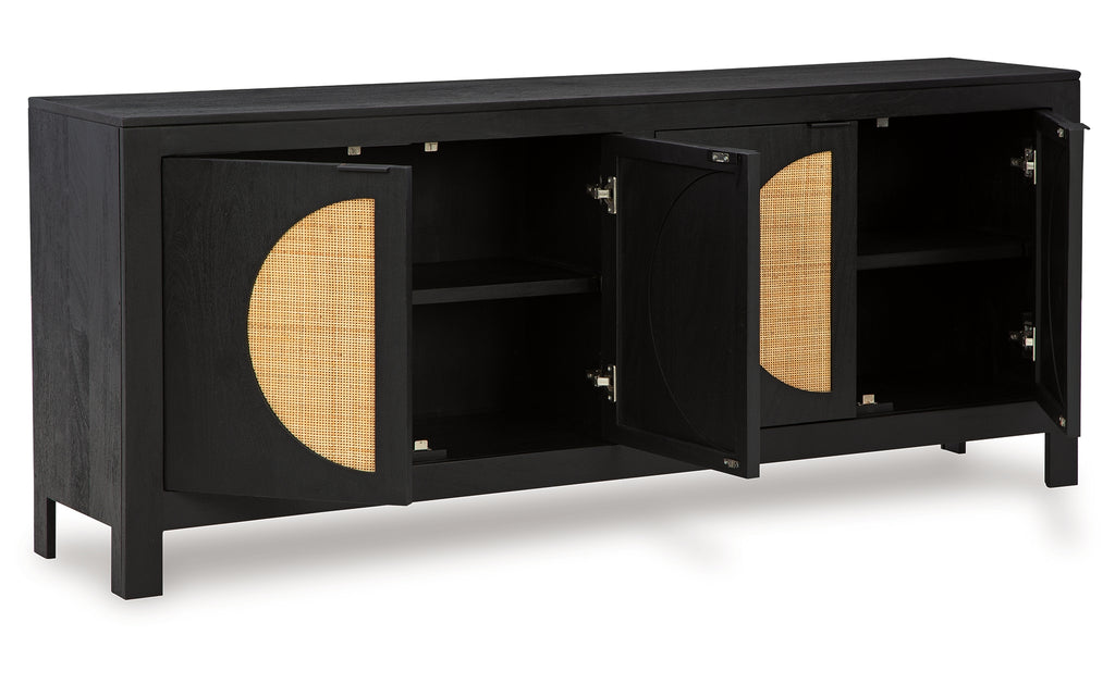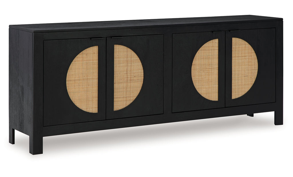 Bring high style and functionality to your home with this contemporary accent cabinet. Woven cane door fronts and a contrasting black finish bring the wow factor to this mid-century inspired piece. Whether it suits your storage needs in the dining room, home office or entryway, it's quite a showpiece. | Product Features