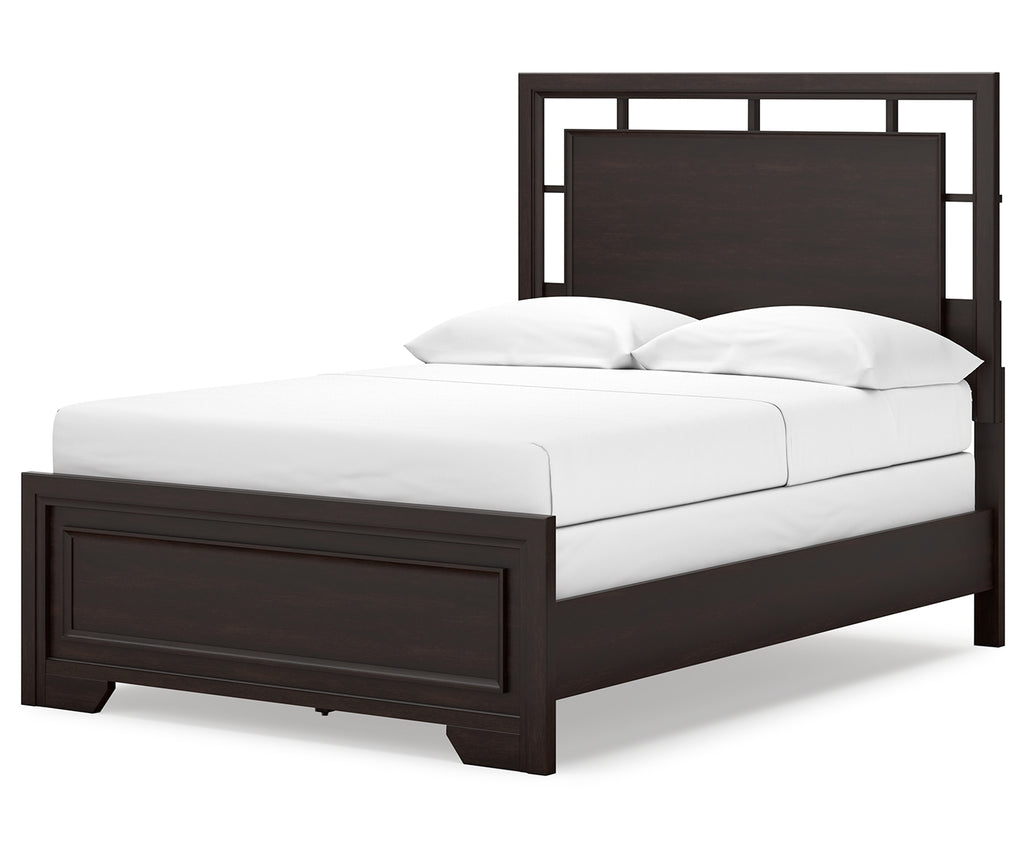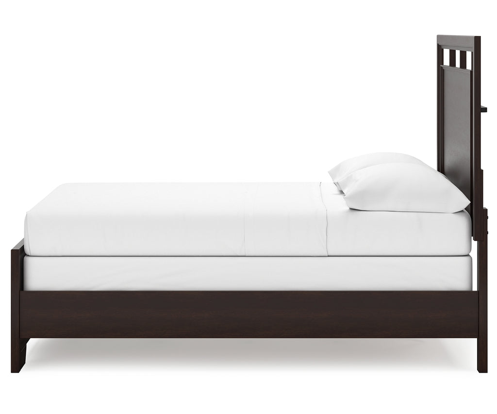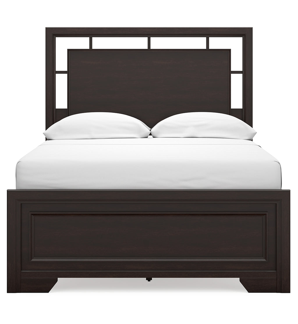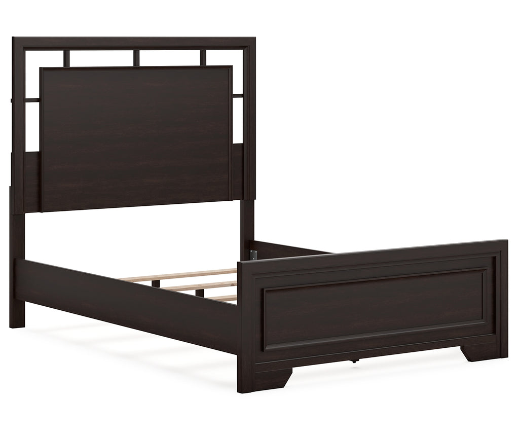 - Includes panel headboard, footboard, rails and slats