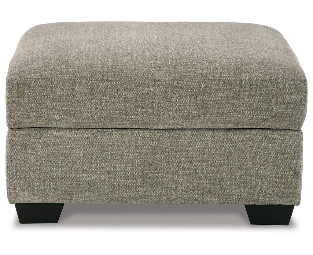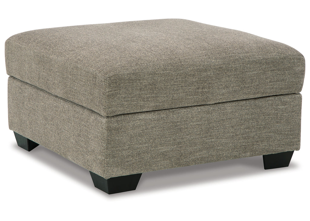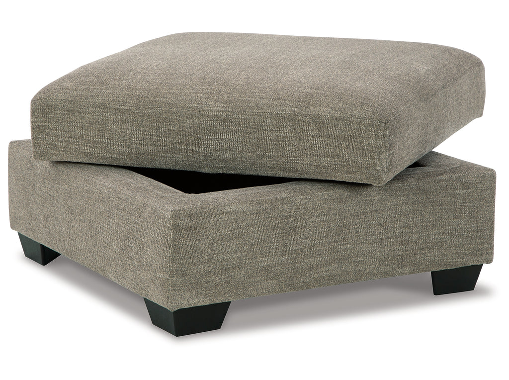 This ottoman adds a richly neutral aspect to your living space. This versatile companion piece offers ample storage space plus a tabletop with cup holders on the reverse side of the removable cushion. |