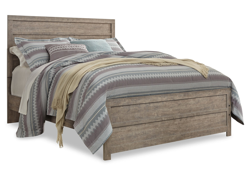 This queen panel bed’s weathered driftwood finish evokes such an ethereal vibe—exactly what you need for a serene bedroom suite. Chunky moulding creates a plank-like effect while clean lines make for a timeless look you’ll love living with for years to come. Mattress and foundation/box spring available, sold separately.