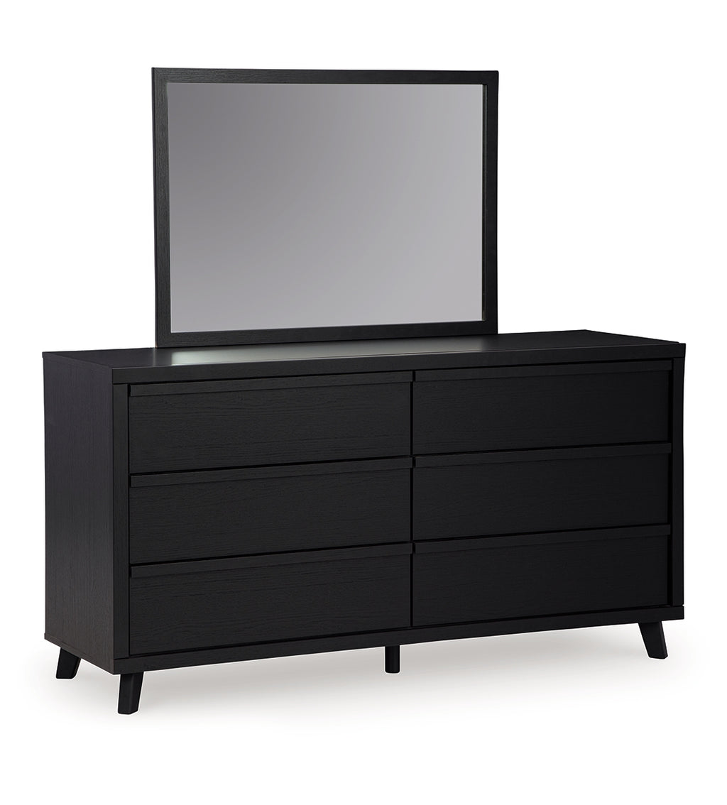 Sophisticated style for the savvy shopper. This dresser with mirror prioritizes affordable, on-trend design. Its subtle replicated texture recalls the natural beauty of wood, highlighting the slatted styling. And a matte black finish savvily suits different approaches to modern aesthetics. Mix and match with light and bright hues, or pair with other dark tones for a moody look. | Product Features