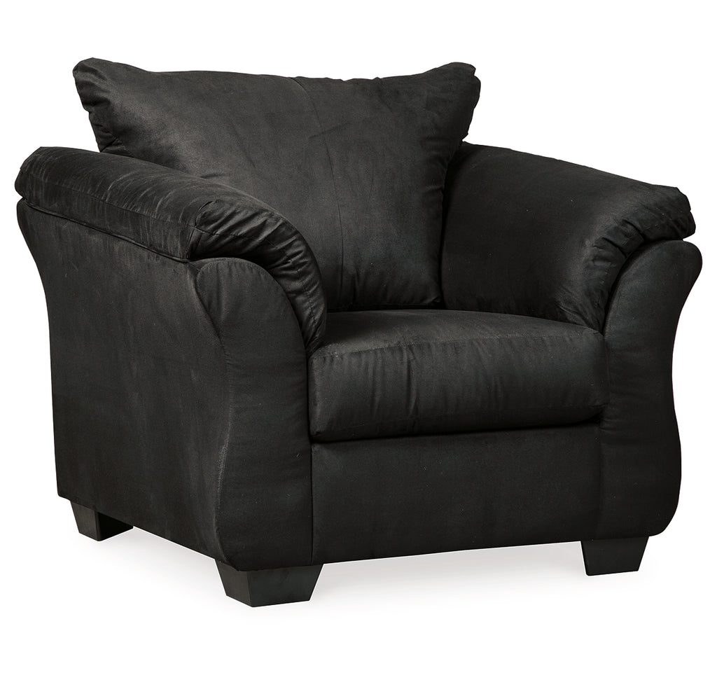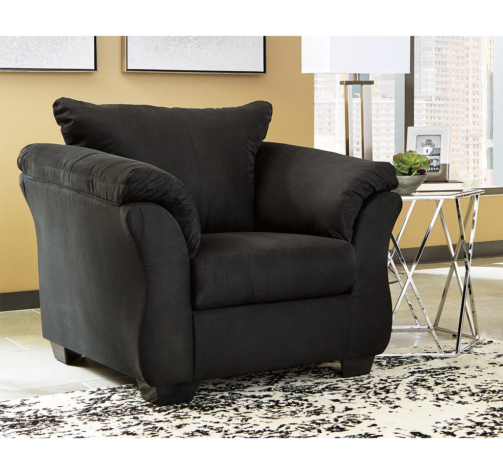 Talk about fine lines and great curves. That’s the beauty of this standout chair—made to suit your appreciation for simplicity and love of contemporary style. A striking flared frame, comfy pillow top armrests and an ultra-soft upholstery that holds up to everyday living complete this fashion statement. | Product Features